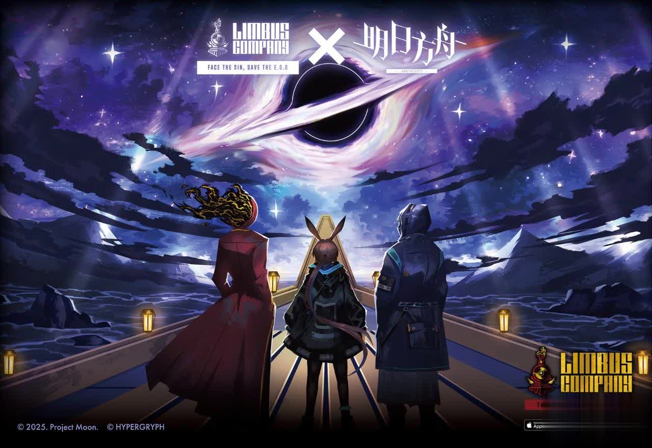 最后要分享一个新活动信息,这边联动还没开始,那边边狱巴士X明日方舟已经放出联动主视图了。《边狱公司》是由韩国游戏公司月亮计划开发的回合制游戏,游戏中玩家扮演公司管理者,带领多名角色乘坐巴士,在都市各地的脑叶公司支部中寻找并回收“金枝”。天上全是星星,在边狱巴士和明日方舟都不是好兆头啊。