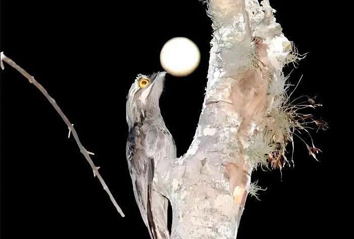 大林鸱这外观,简直就是为了伪装而生。它那斑驳的羽毛,颜色和树干、树枝的颜色极为相似,就像是给自己披了一件“隐身衣”。当它白天栖息在树上的时候,只要它不动,你很难发现它的存在,这波伪装操作直接封神。而且它的眼睛又大又圆,在夜晚的时候,这双眼睛会发出幽光,再加上它那奇怪的外形,难怪会被叫做“鬼鸟”呢。不得不说,大自然的“化妆师”真的很偏爱大林鸱,把它打造得如此独特。