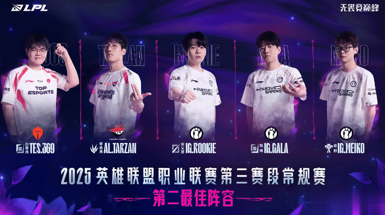 再来看看二阵选手,依次是:369、Tarzan、Rookie、Gala以及Meiko。369这边第三赛段其实表现不算很好,队伍分估计给的不低。Tarzan就无需多言了,没有他,AL都走不到这一步。Rookie和Knight都是争一阵的存在,二阵也是实至名归。Gala自从Wei加盟之后,也是逐渐Carry了起来,四、五杀不断。Meiko虽说第一赛段表现很臭,但终究还是慢慢正常了起来,和wei的野辅联动也是不错的。
