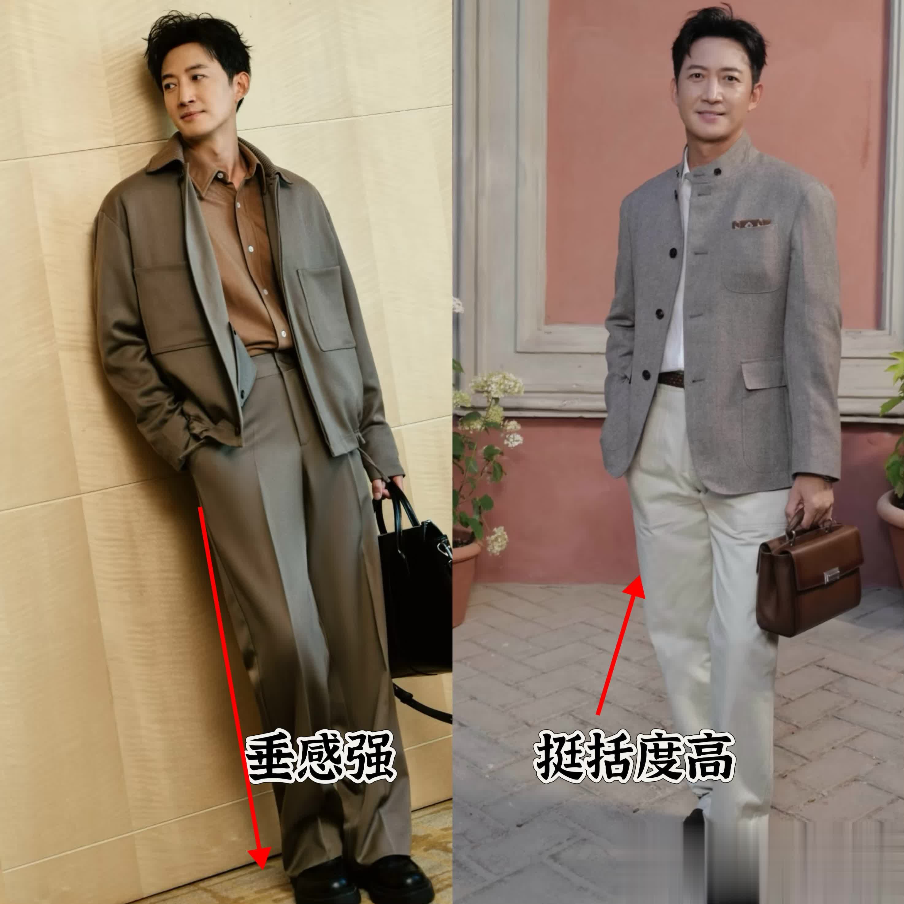 比如他选衣服、裤子的时候就最关注垂感和挺括度,有垂感的单品不容易皱,挺括度高的衣服更利落有型,穿在身上塑形效果不错。