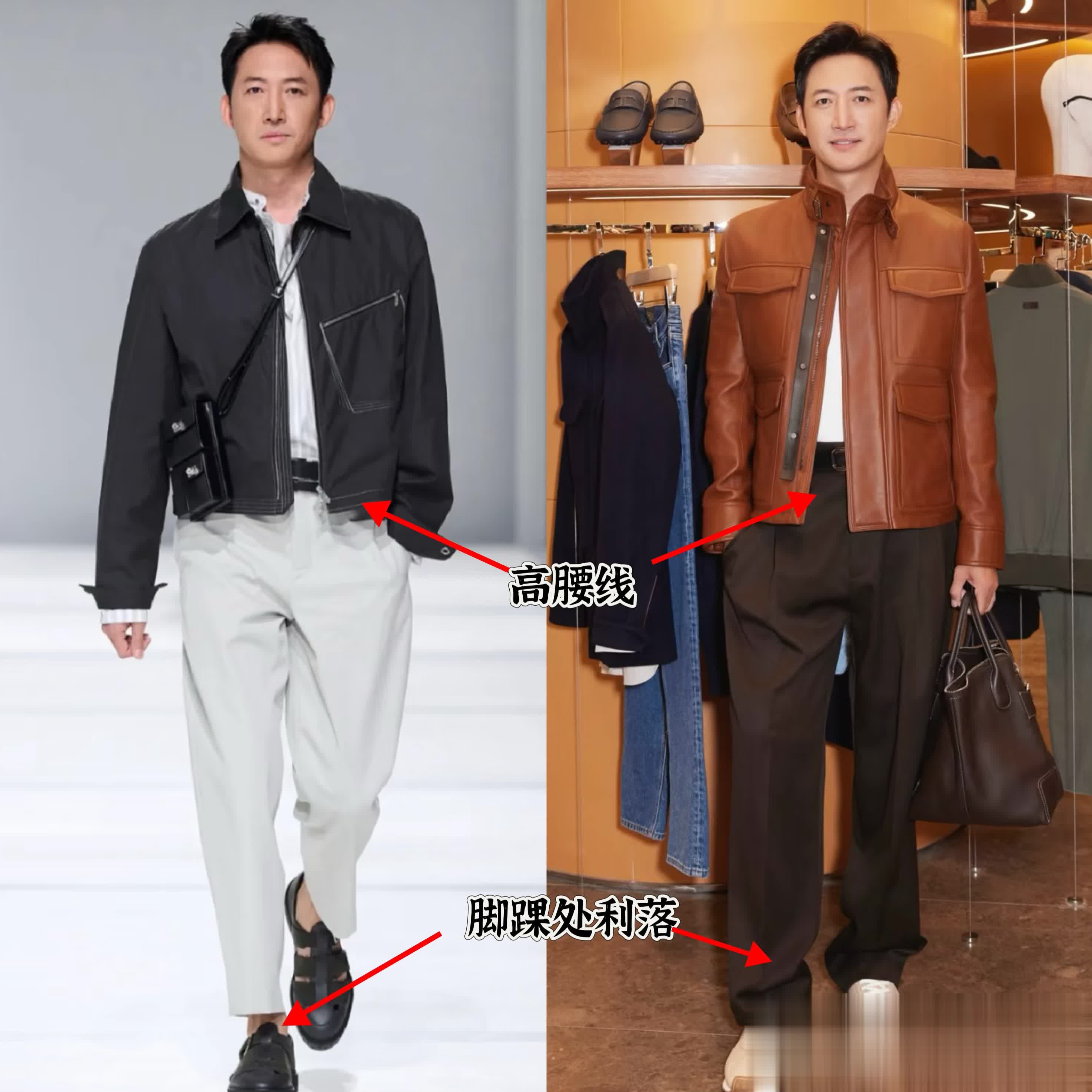 在具体搭配的时候,王阳就很懂这一点,选剪裁挺括、线条感强的衣服和裤子,搭配的时候靠着塞衣角、系腰带划分腰身,同时也注重腰线和版型,这笔直的大长腿就是这么穿出来的。