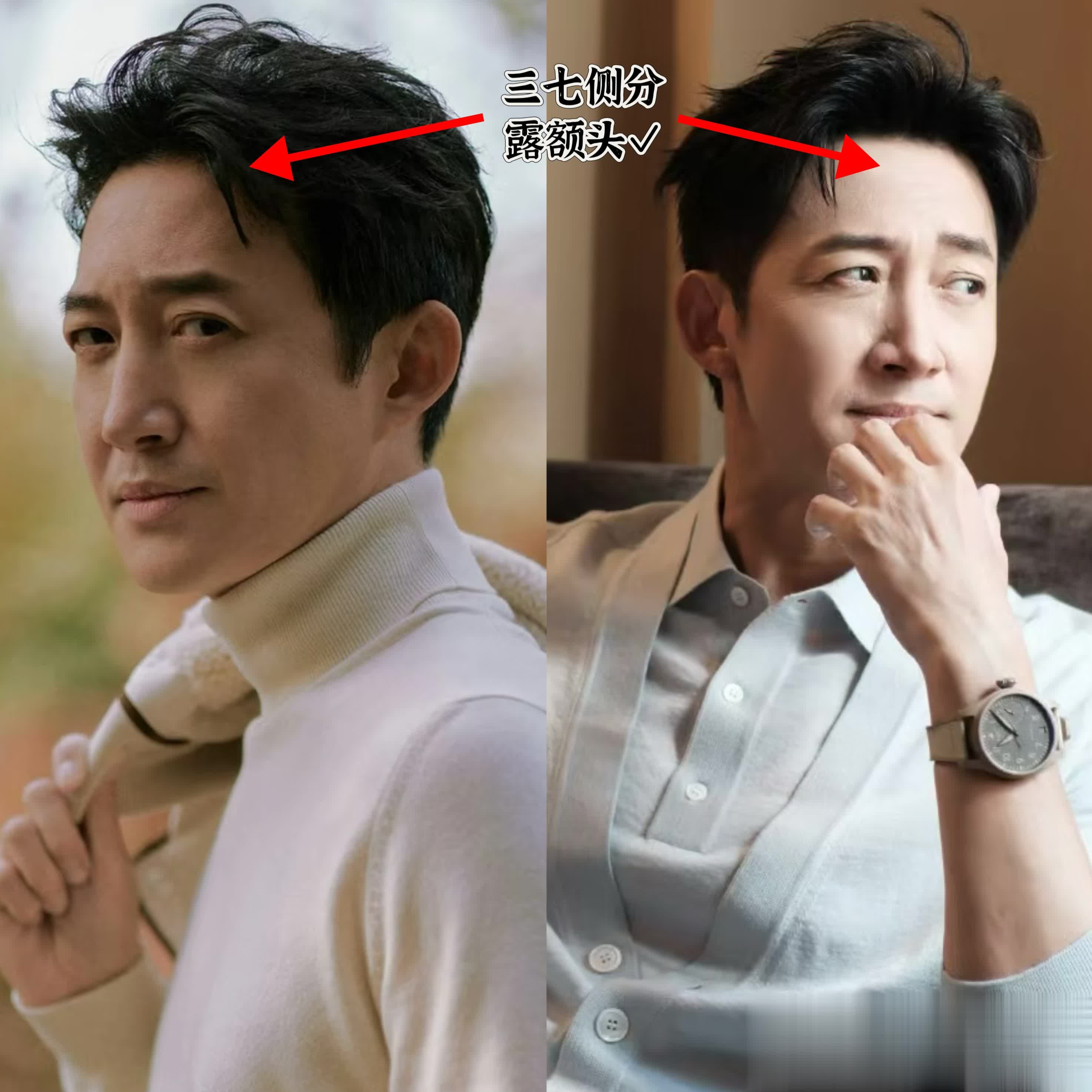 看了好多王阳的照片,我发现他最爱的发型就是“三七侧分”,为啥他这么喜欢这款发型?主要是三七侧分可以露出额头,还有自然的高颅顶,特别利落有精气神。