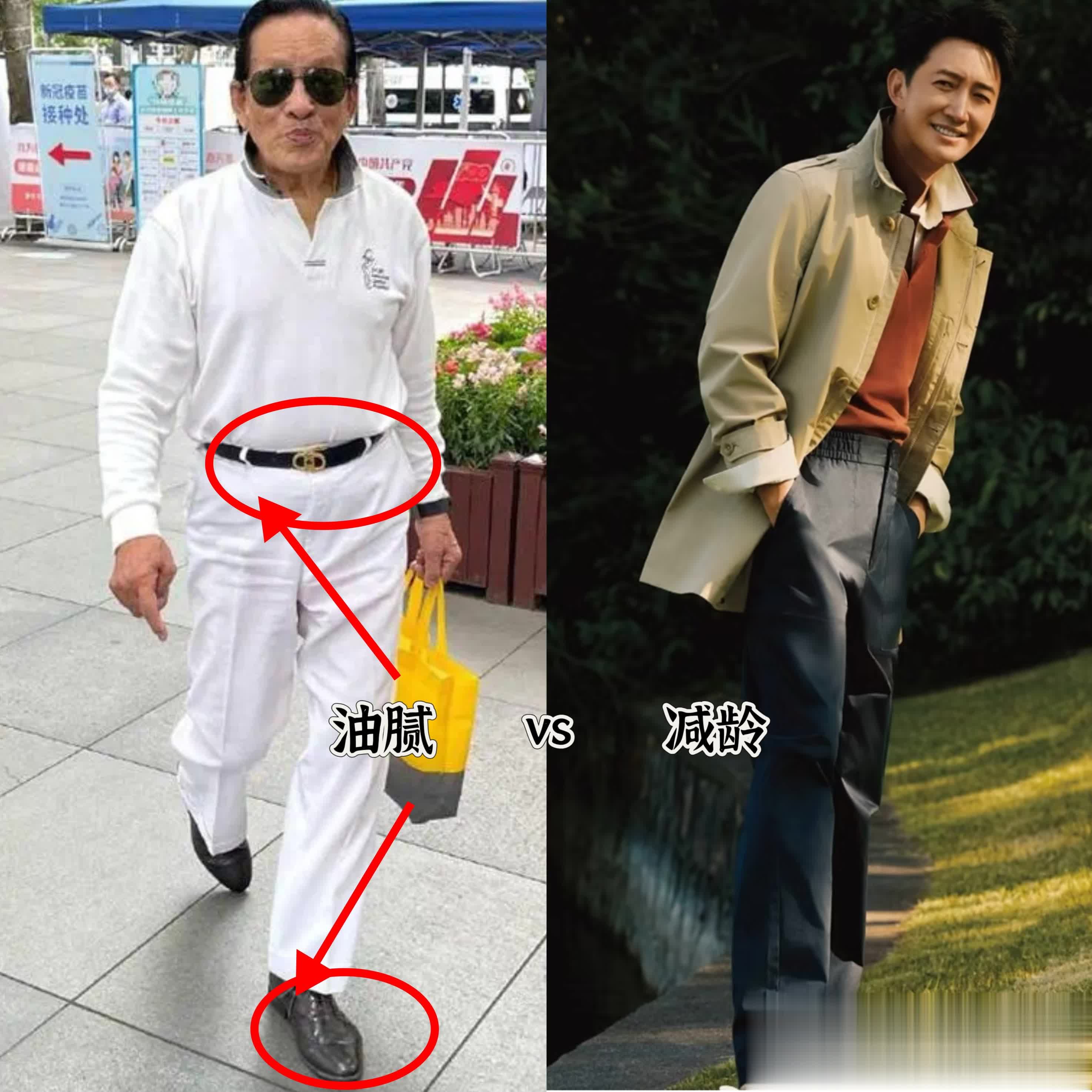 此外,很多中年大叔穿衣服还容易陷入紧绷感的误区,尤其是紧身T恤、紧身裤的搭配,给人一种很刻意紧绷的油腻感,要是身材发福了这么穿,更是会暴露身材缺点。