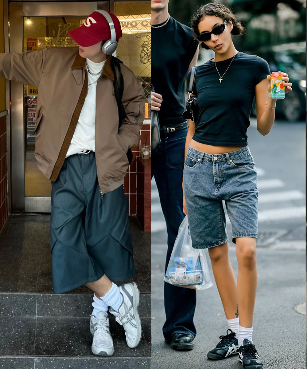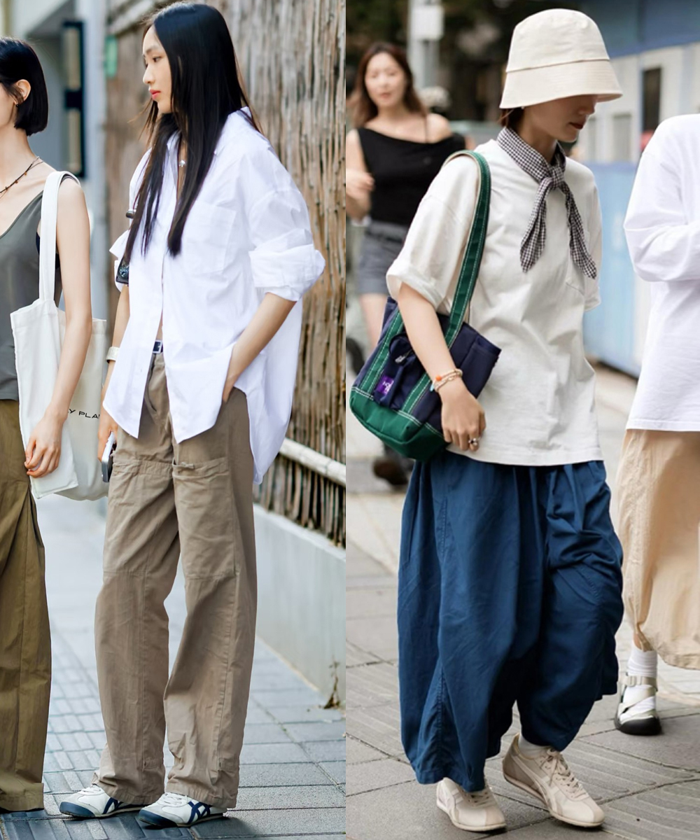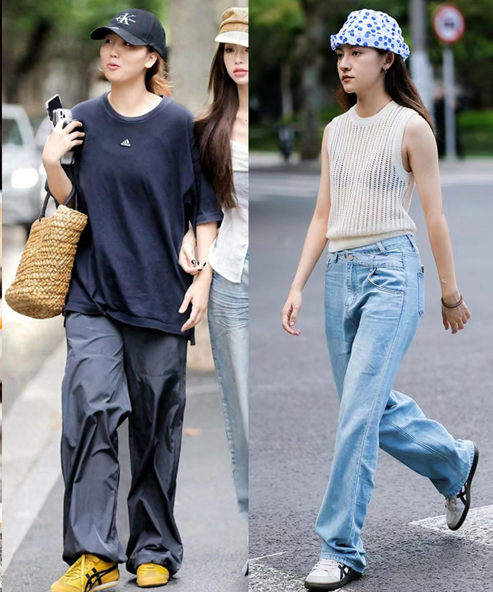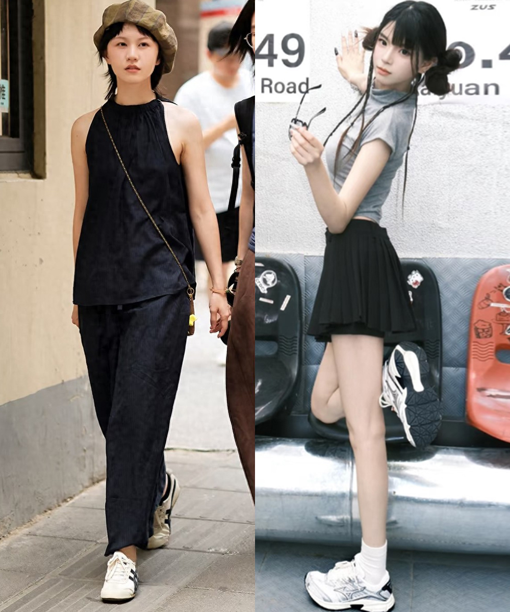 想要把日本运动鞋穿出高级感,穿搭上可以遵循日系搭配法则。采用“上松下宽”的穿法,服装版型略微宽松,舒适的同时也能营造随性松弛感,赢得不费力的时髦。