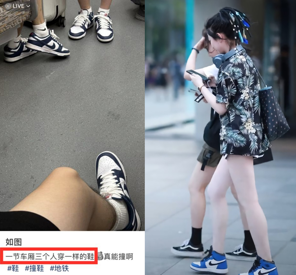 撞鞋尴尬与个性表达的矛盾,也是人们不选择耐克、李宁的原因之一。在最夸张的时候,耐克的AJ、Dunk熊猫几乎人脚一双,真假混在一起,要多尴尬就有多尴尬。