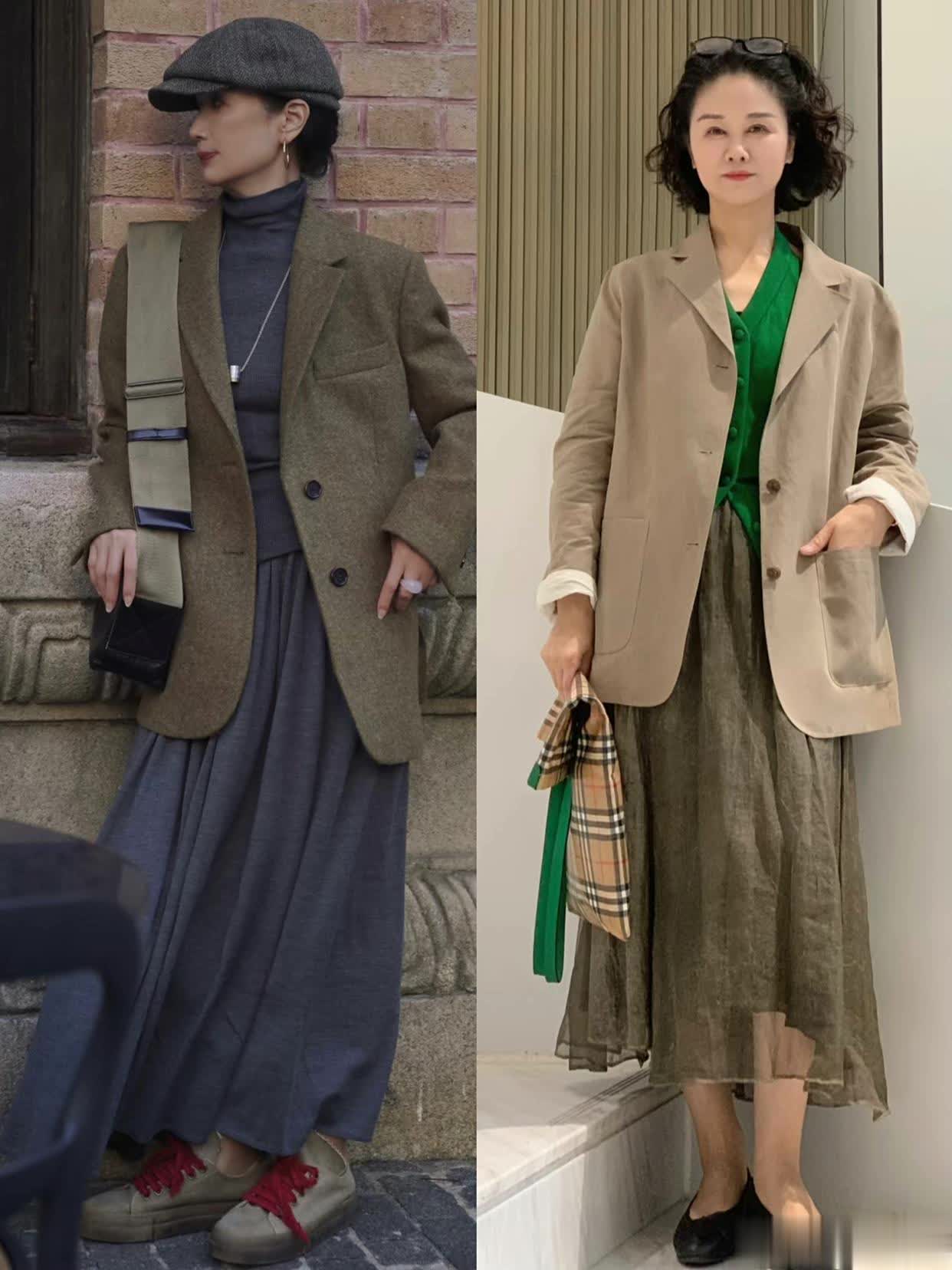 今秋意外发现!这3件“薄外套+半身裙”时髦优雅还减龄