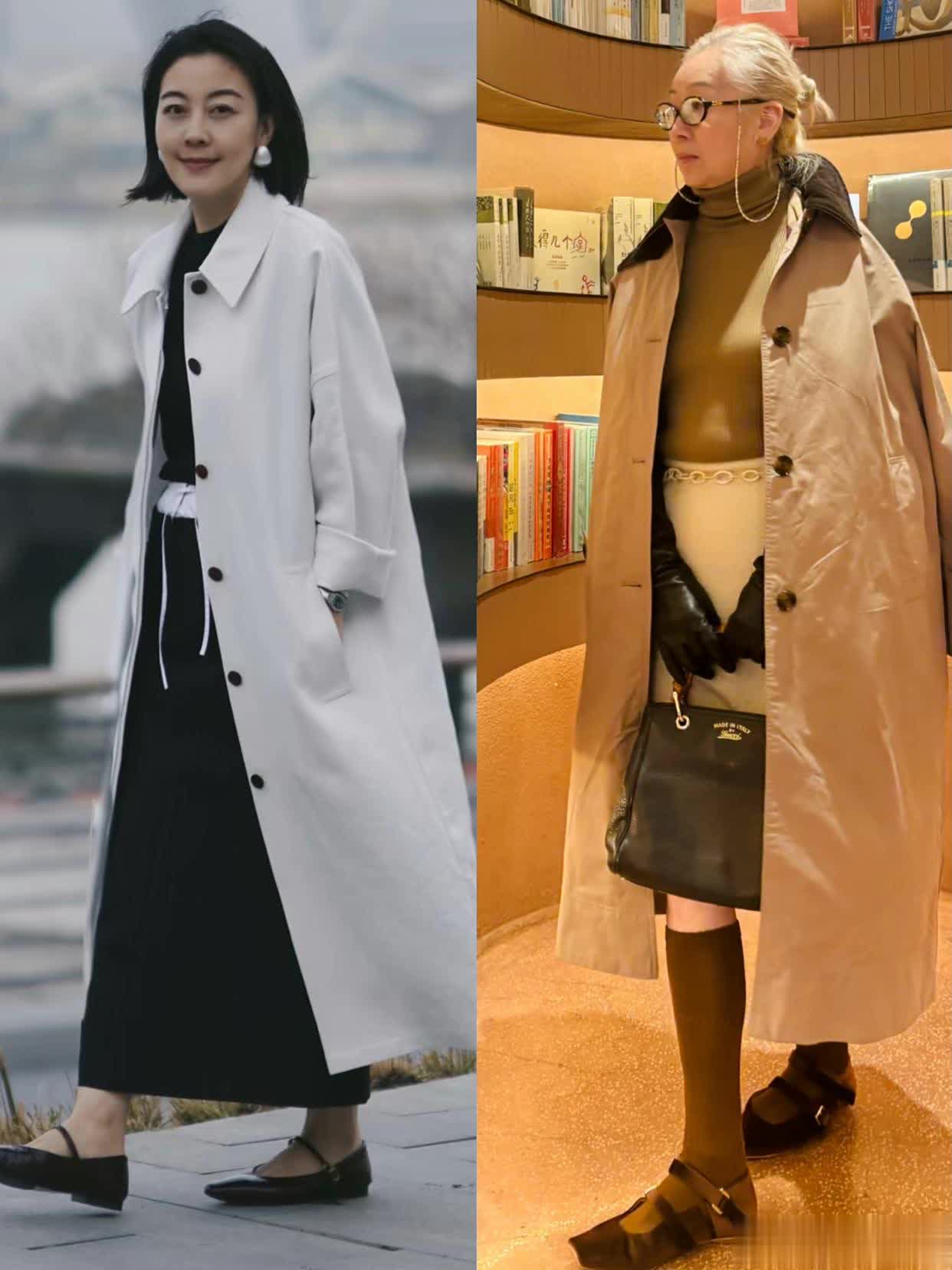 最后秋天的薄外套除了开衫、西装之外,我们还可以选择出镜率最高的风衣,里面不管是搭配裙子还是内搭都能够完美的展现身材比例,我们选择风衣除了收腰的款式还可以选择廓形的款式,利用敞开穿露出内搭的方式,这样不仅可以提升腰线,同时还能打造三七分身材比例,此外我们选择风衣长度的时候尽量选择过膝不过踝的长度,这样穿在身上之后不压身,小个子也能轻松驾驭。