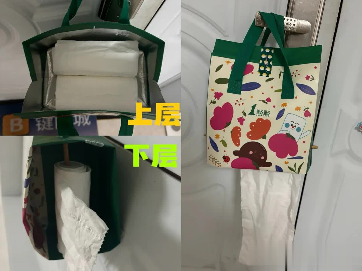 一般情况下,我们都会买个纸巾收纳盒放在卫生间。其实奶茶袋子经过稍微改造就能华丽变身成为纸巾收纳袋,而且它还具有防水的属性,既环保又实用。