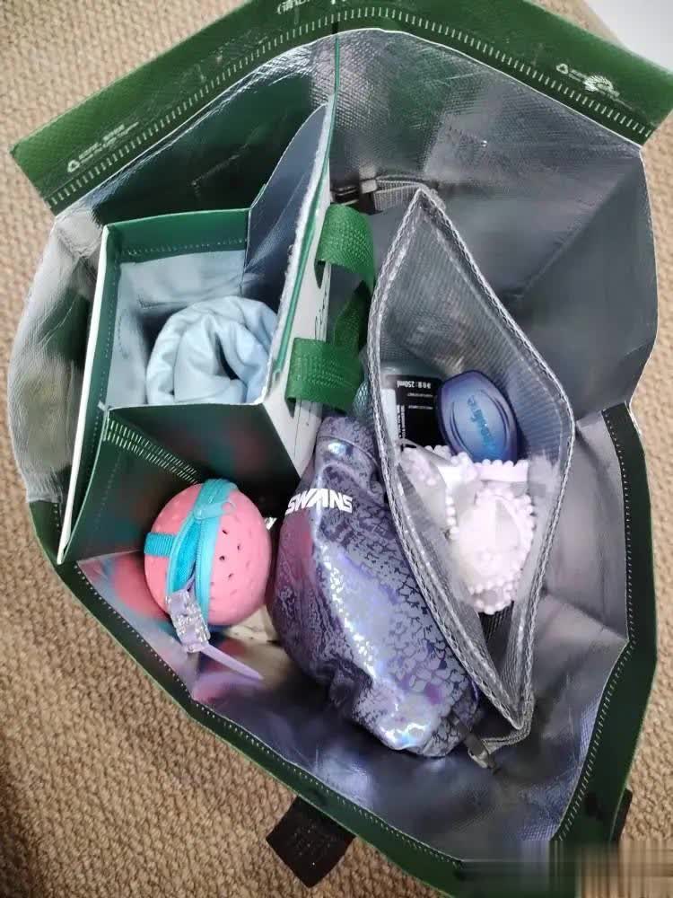奶茶袋子不做任何的改造,它就是一个完美的收纳袋,因为是铝箔材质也不漏水,可以用来装游泳衣。