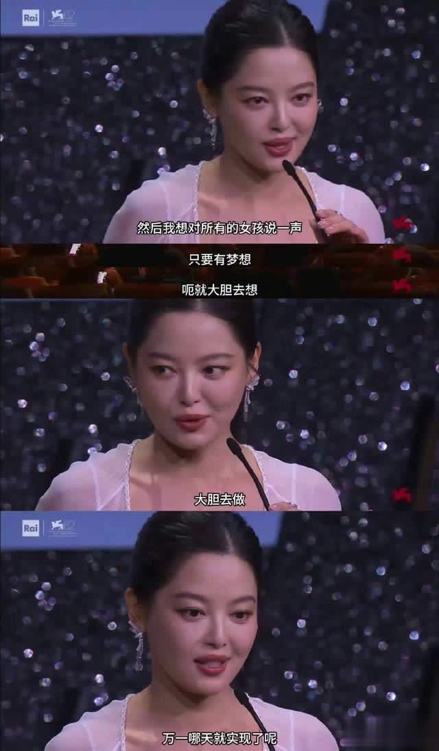 捧起奖杯的那一瞬,辛芷蕾再度提及自己被嘲往事,她说:“大胆去做,万一像我一样呢”。