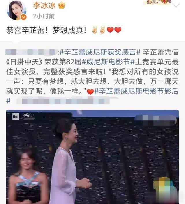李冰冰、钟楚曦等人纷纷为其祝贺,不仅有同为女演员的欣赏,也有来对于这位女演员的认可。