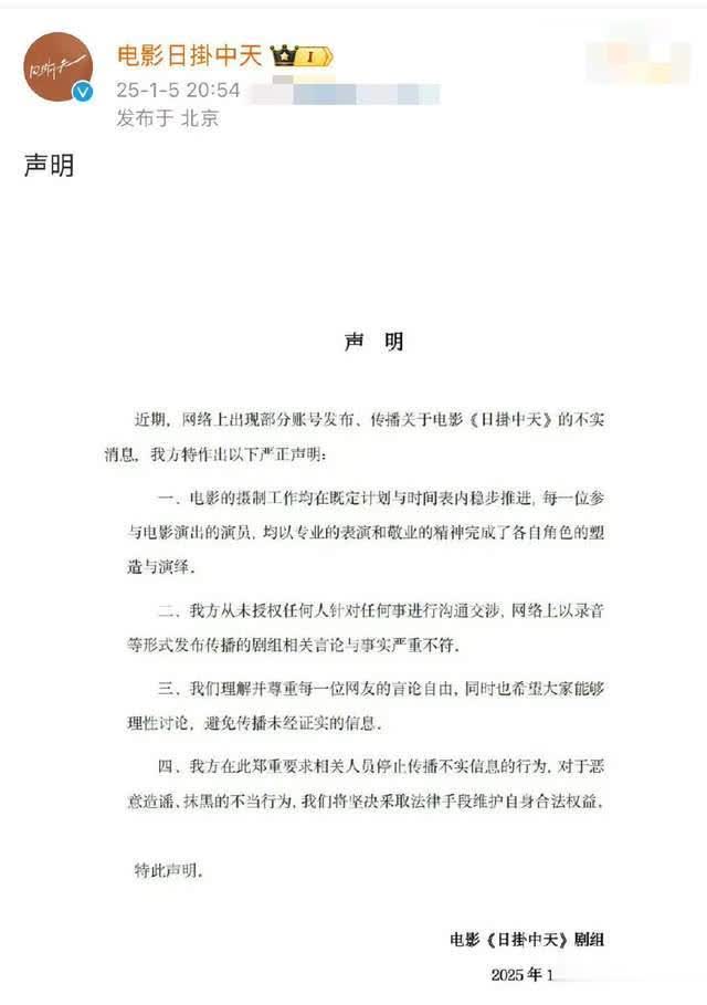但很快,剧组就声明称未授权任何人针对任何事情进行沟通交涉。