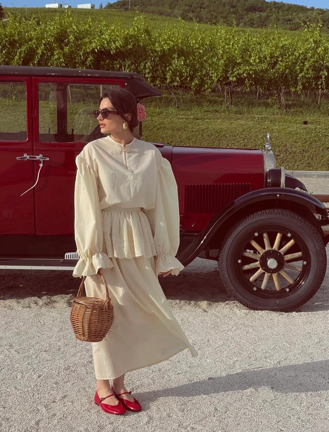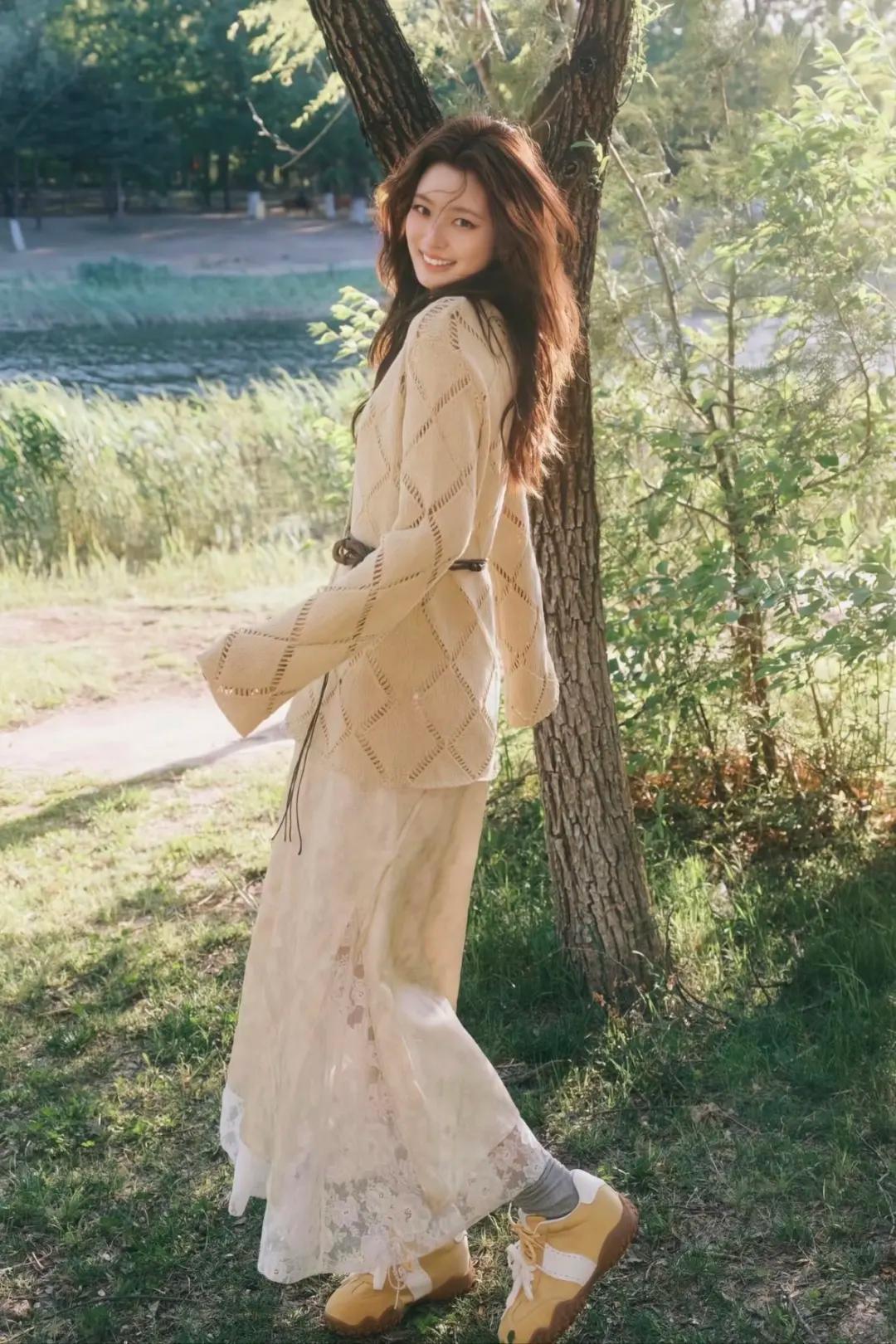 它不像印花裙那样堆砌季节符号,也不似深色裙那般沉郁,只以一袭温润的米调,把秋日的清透与温柔都穿在了身上。