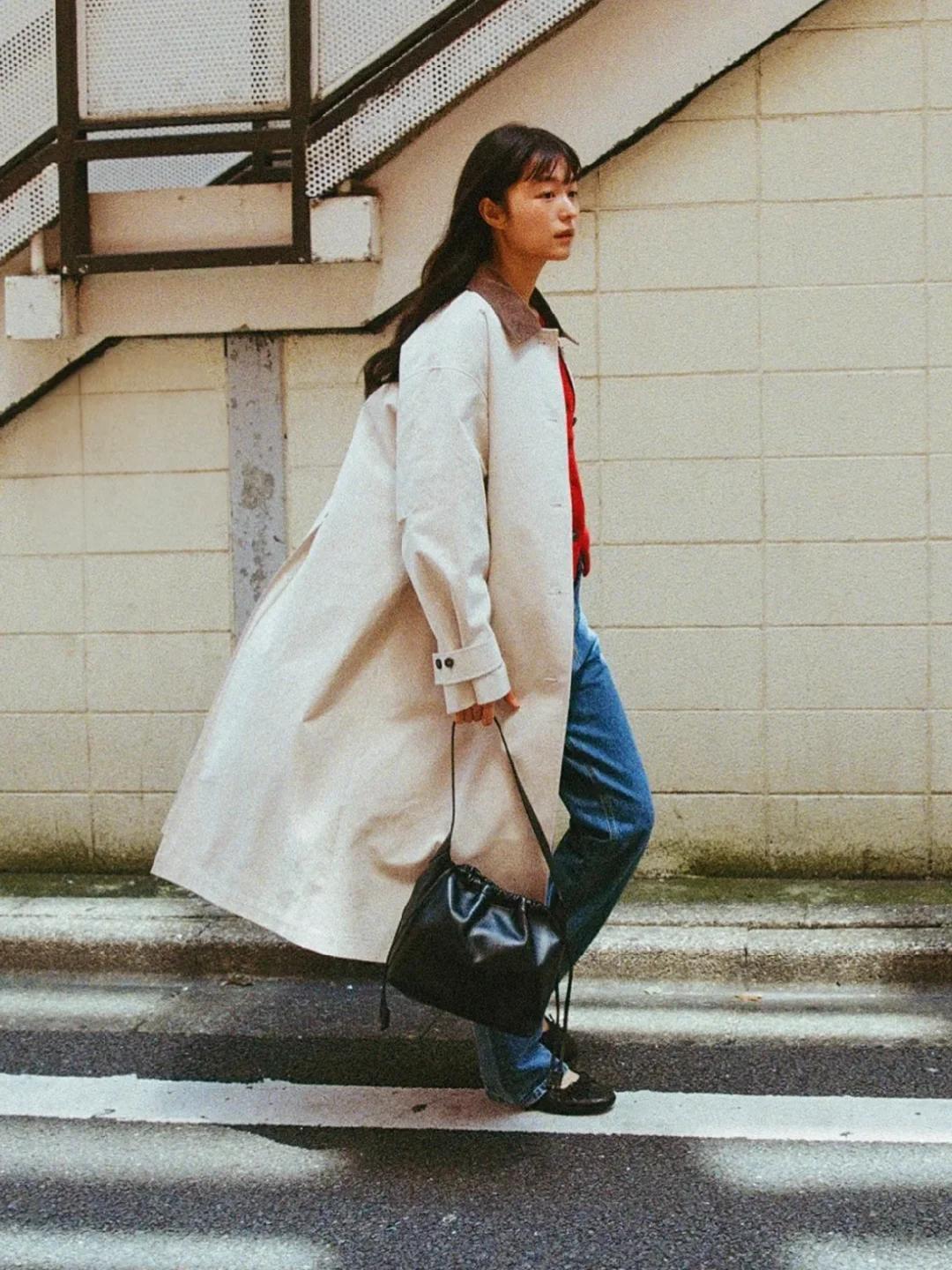 米色风衣的雅致,是刻在骨子里的从容。它不像亮色风衣那样急于宣告存在感,也不似深色风衣那般自带压迫感,只以温润的米调为底,让利落的剪裁在自然舒展中勾勒出女人最动人的线条。