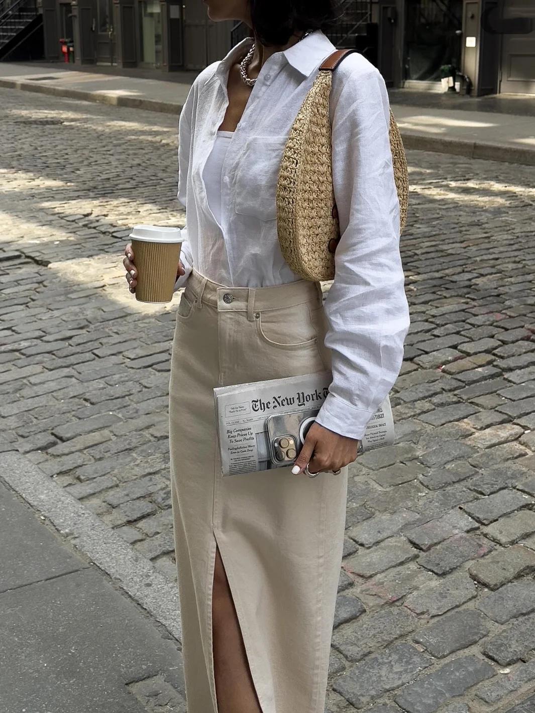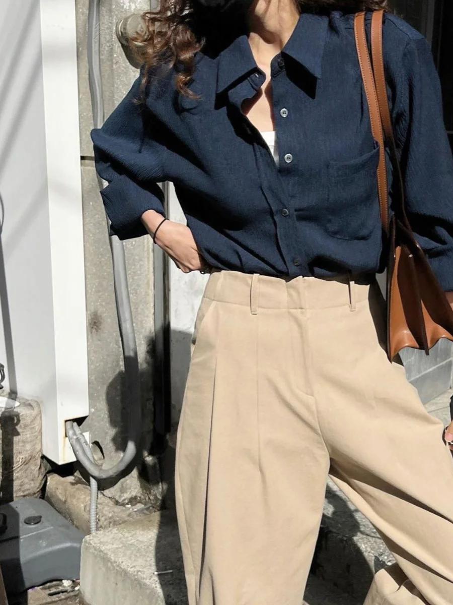 米色衬衫的妙处,正在于这份 “一切都刚刚好” 的分寸感。