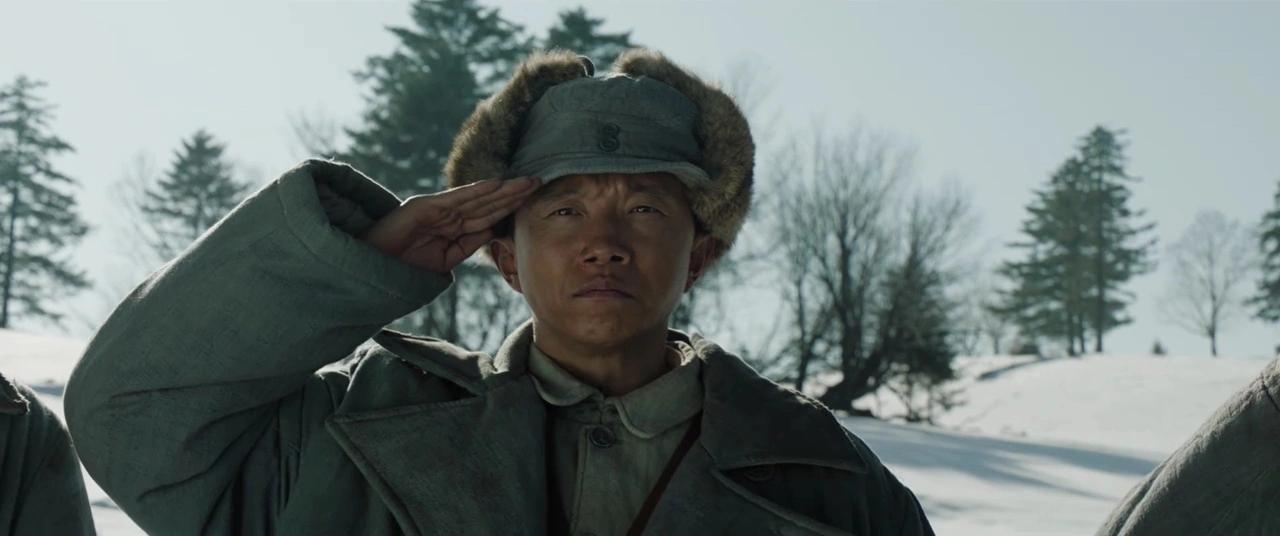 《归队》最后一集,抗联小队最后三名活着的战士,汤德远、云虎、福庆,一起来到“八棵松”前,立正,鸣枪,敬礼。