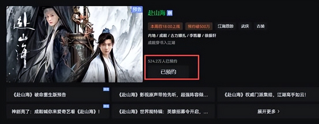 剧集还没开播,预约人数就已经远超524万人,可见观众对武侠类型仍旧抱有极大地期待。