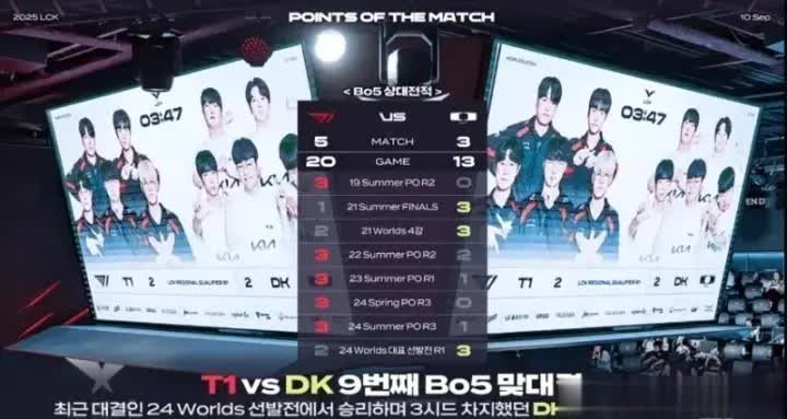 然而这个选择给他们带来了无穷的麻烦,10号,LCK季后赛也是正式开赛,首场比赛就是T1对阵DK,在这场比赛之前,LCK官方给出T1 vs DK历史BO5交手记录:T1大场5胜3负,小场20胜13负,这一波的确是“优势在我”。