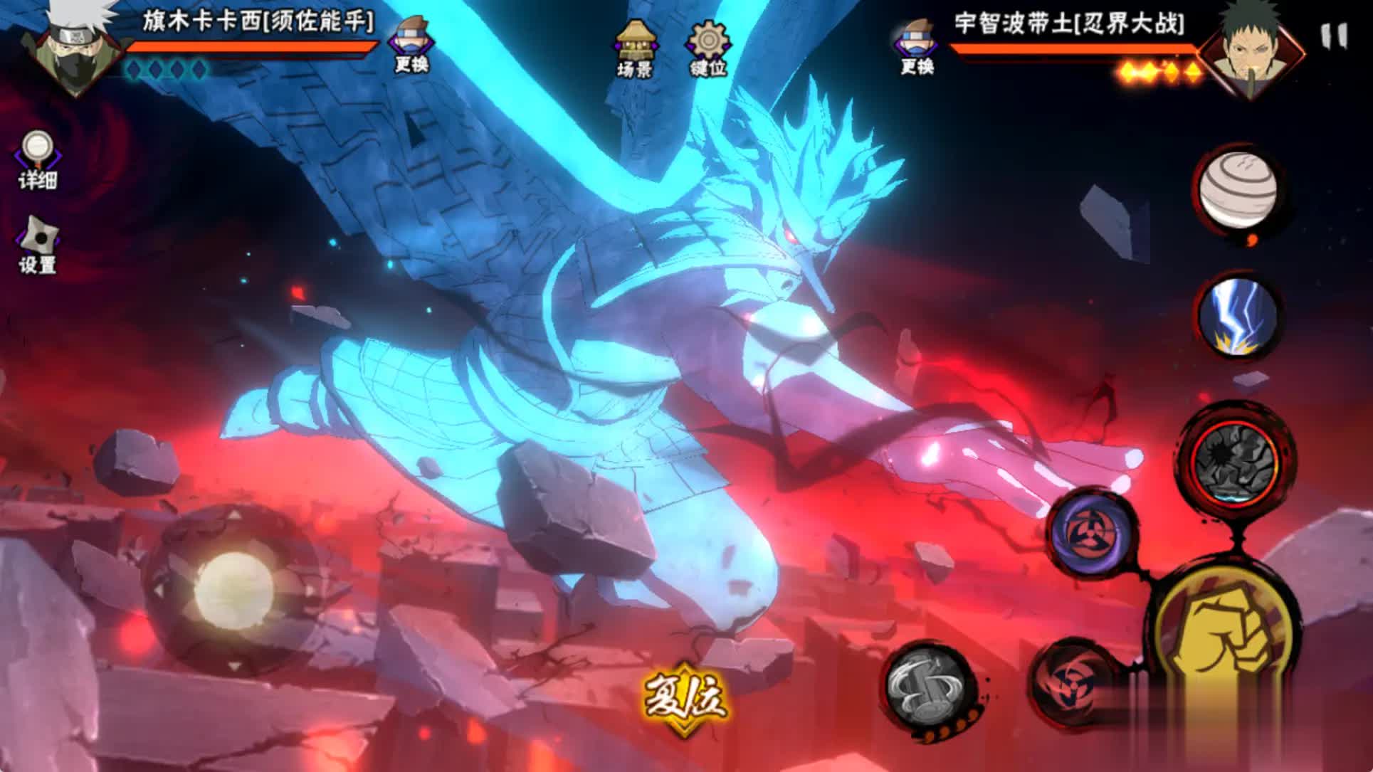 另外,这个忍者名字叫做须佐卡卡西,在须佐能乎方面也是给了不同的表现,只是触发的形式都藏在了二技能虚化之后,搭配一技能或者是触发完美防反后的二段以及组合效果。
