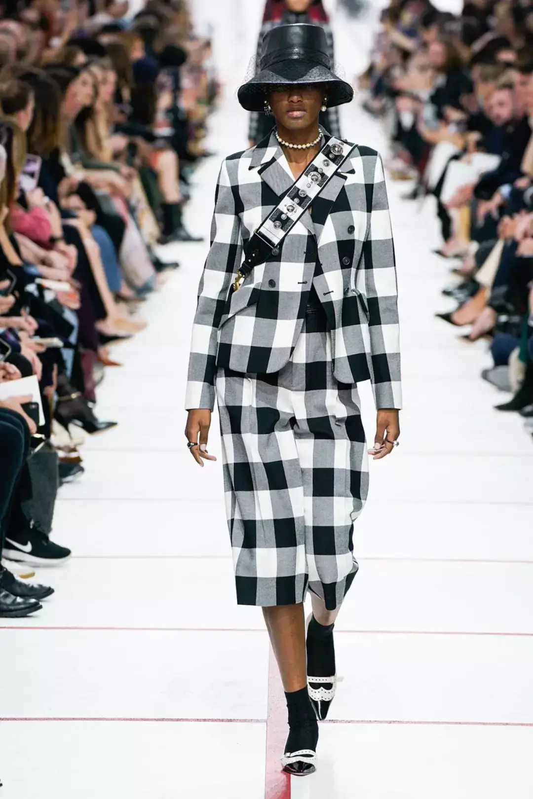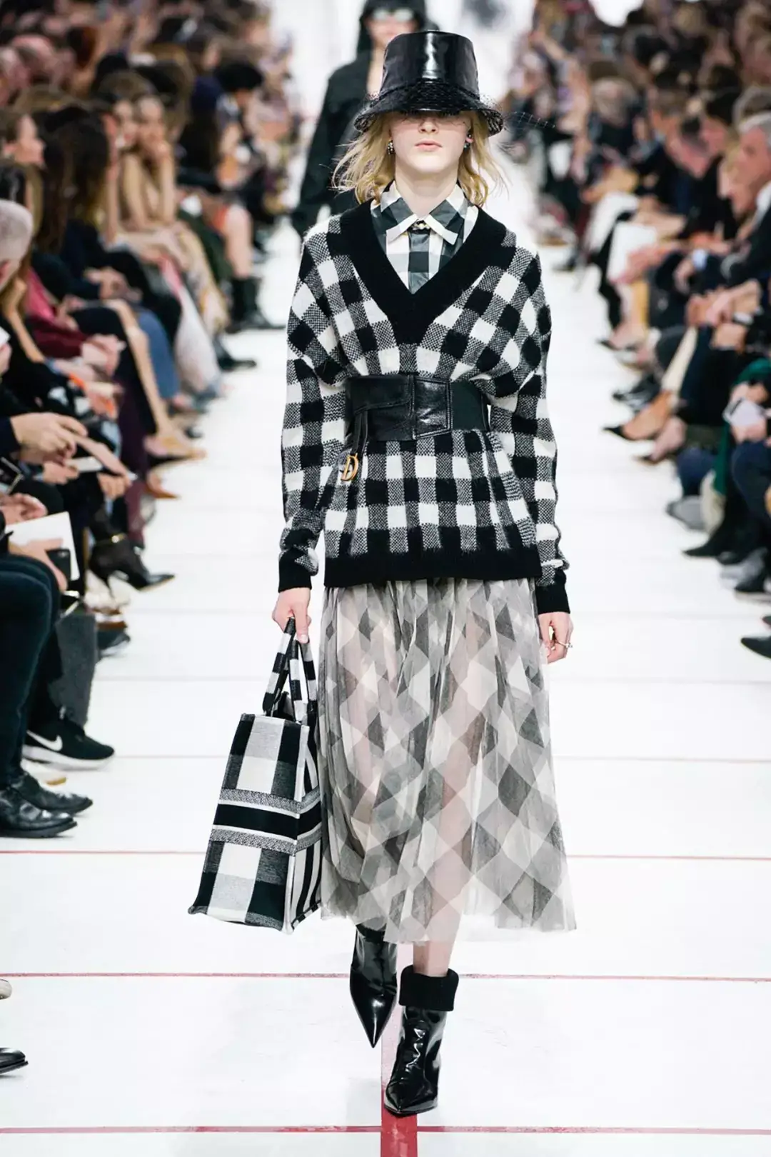 ▼ Dior 2019秋冬大秀上,从外套大衣针织开衫到鞋履箱包,SIZE不同的格纹活跃在模特的身上脚尖和手中。这场秀堪称格子爱好者一生必看的穿搭模板秀。
