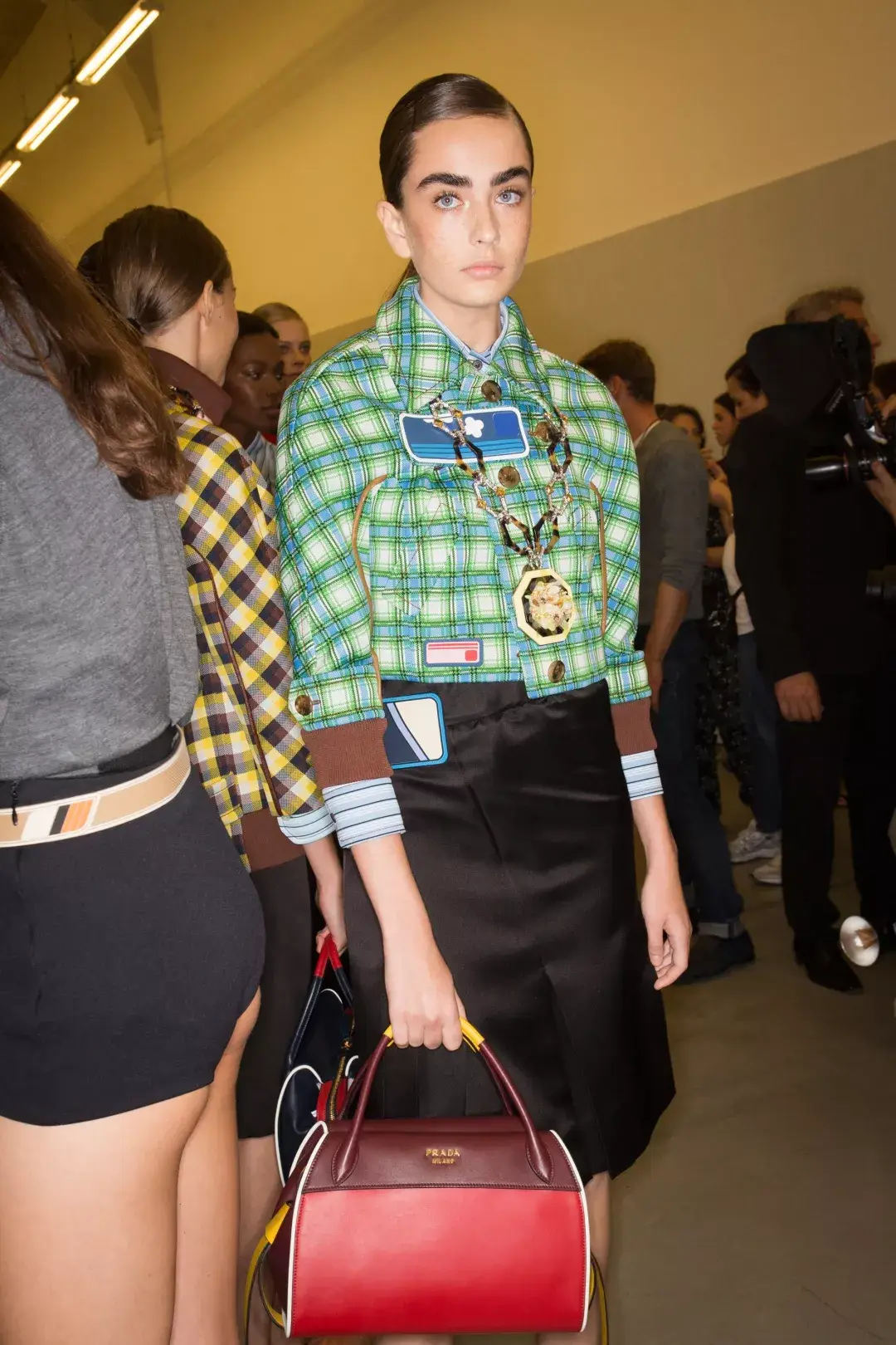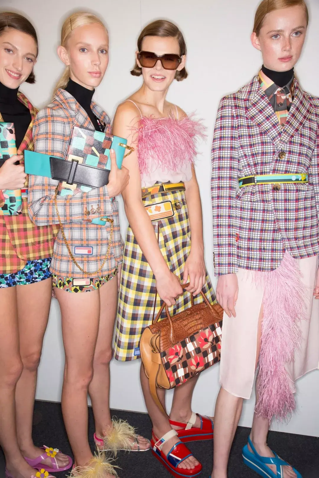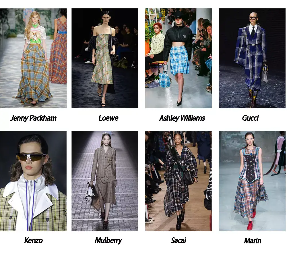 ▼ 在Prada2017 SS大秀上,变换了色彩、间距和设计规则的苏格兰格纹被赋予了青春的生命力,浓郁的撞色带着极强的视觉冲击力。