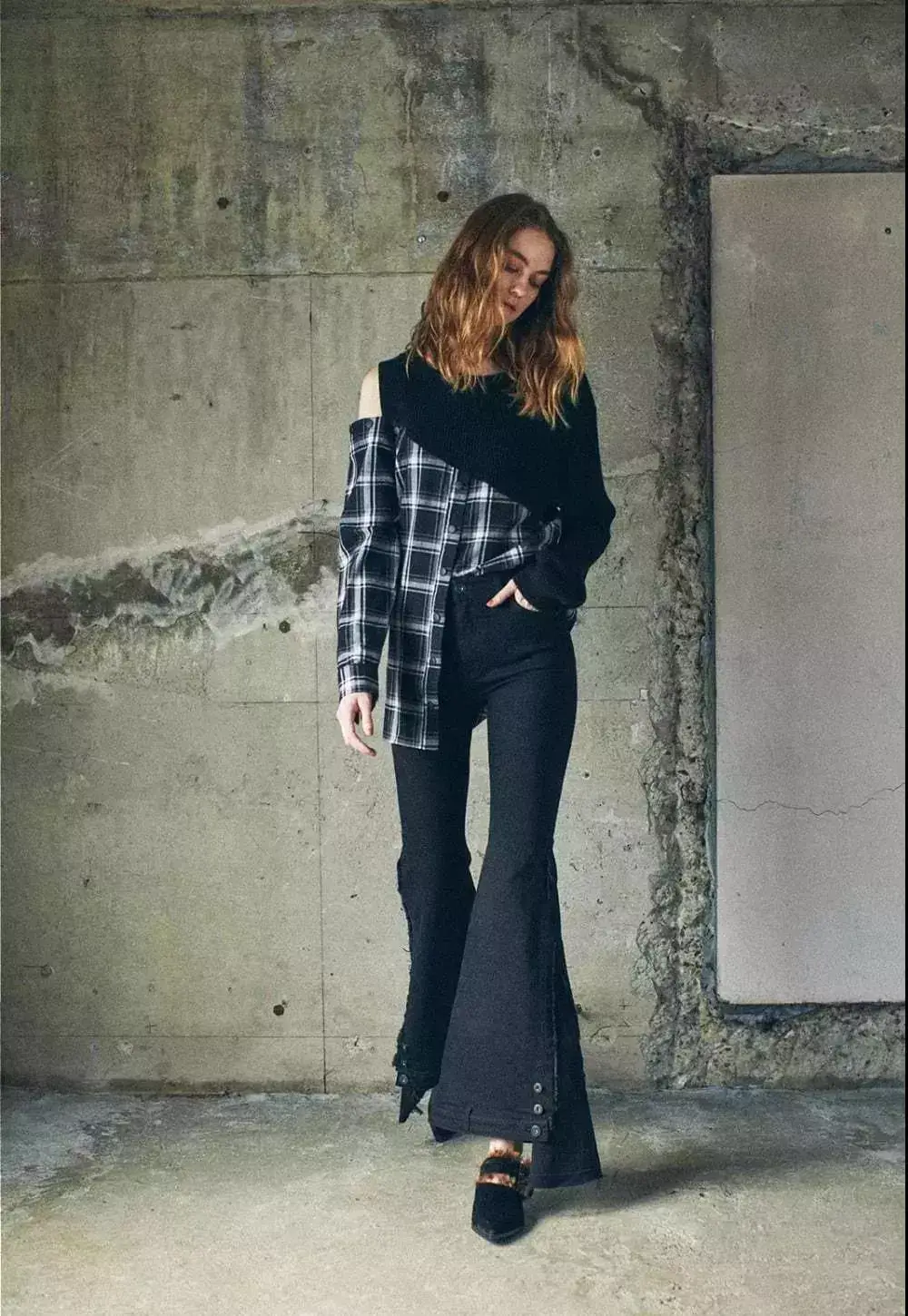怀疑大表姐刘雯最近的格纹衬衫囤货!!她选择了拼接的款式来提高时髦度。