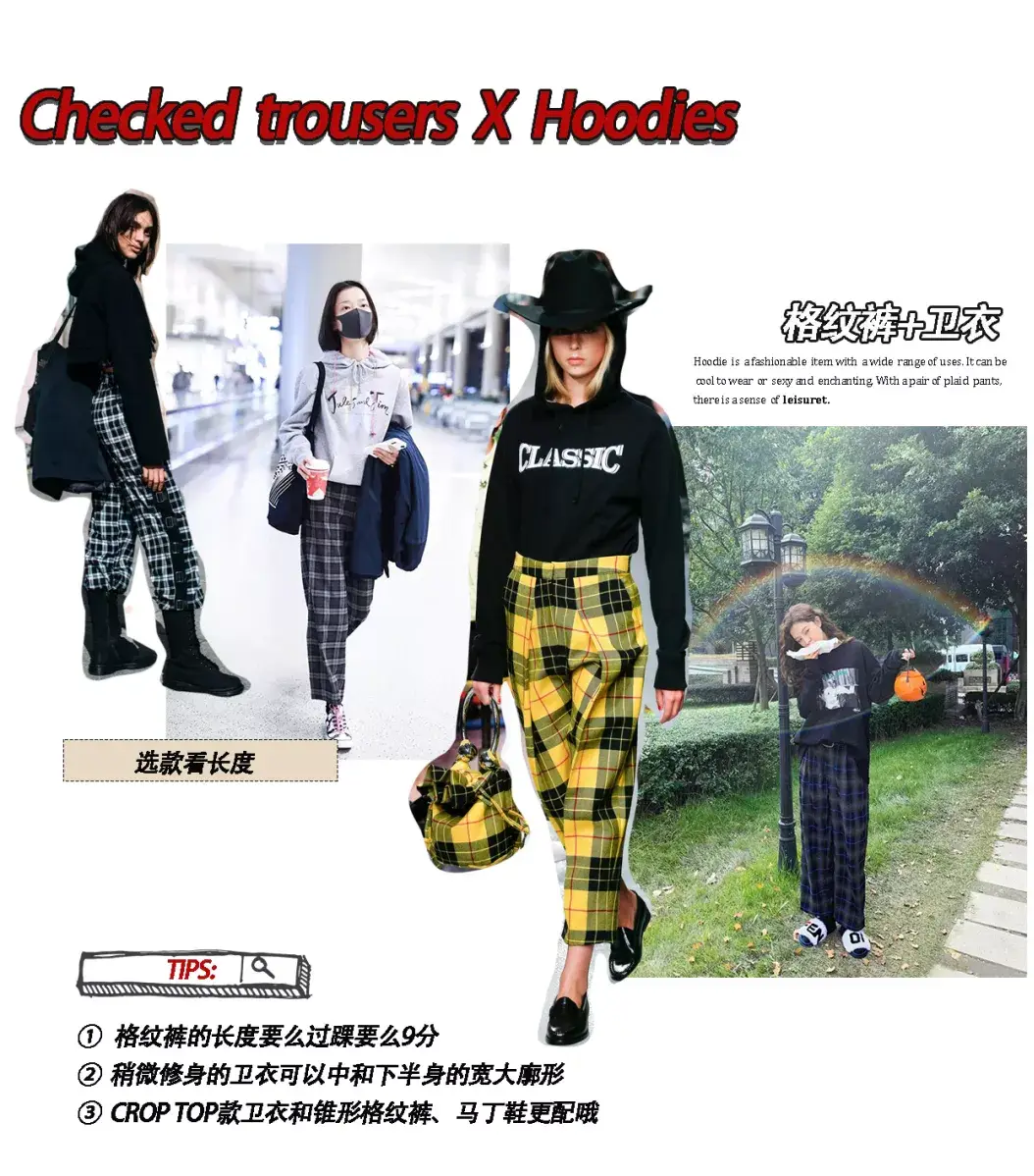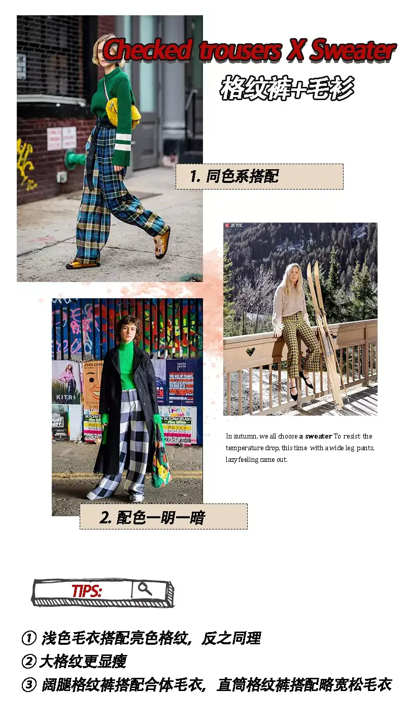 格纹裤搭配上还是简约比较好,因为太考验身材了!如果觉得太单调,其实可以从配饰上做文章,比如选择一顶合适的帽子。