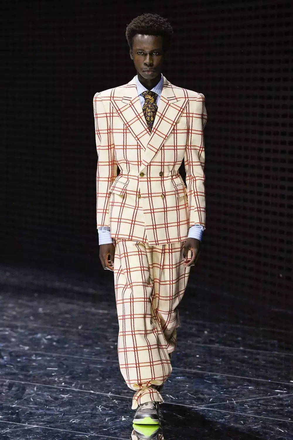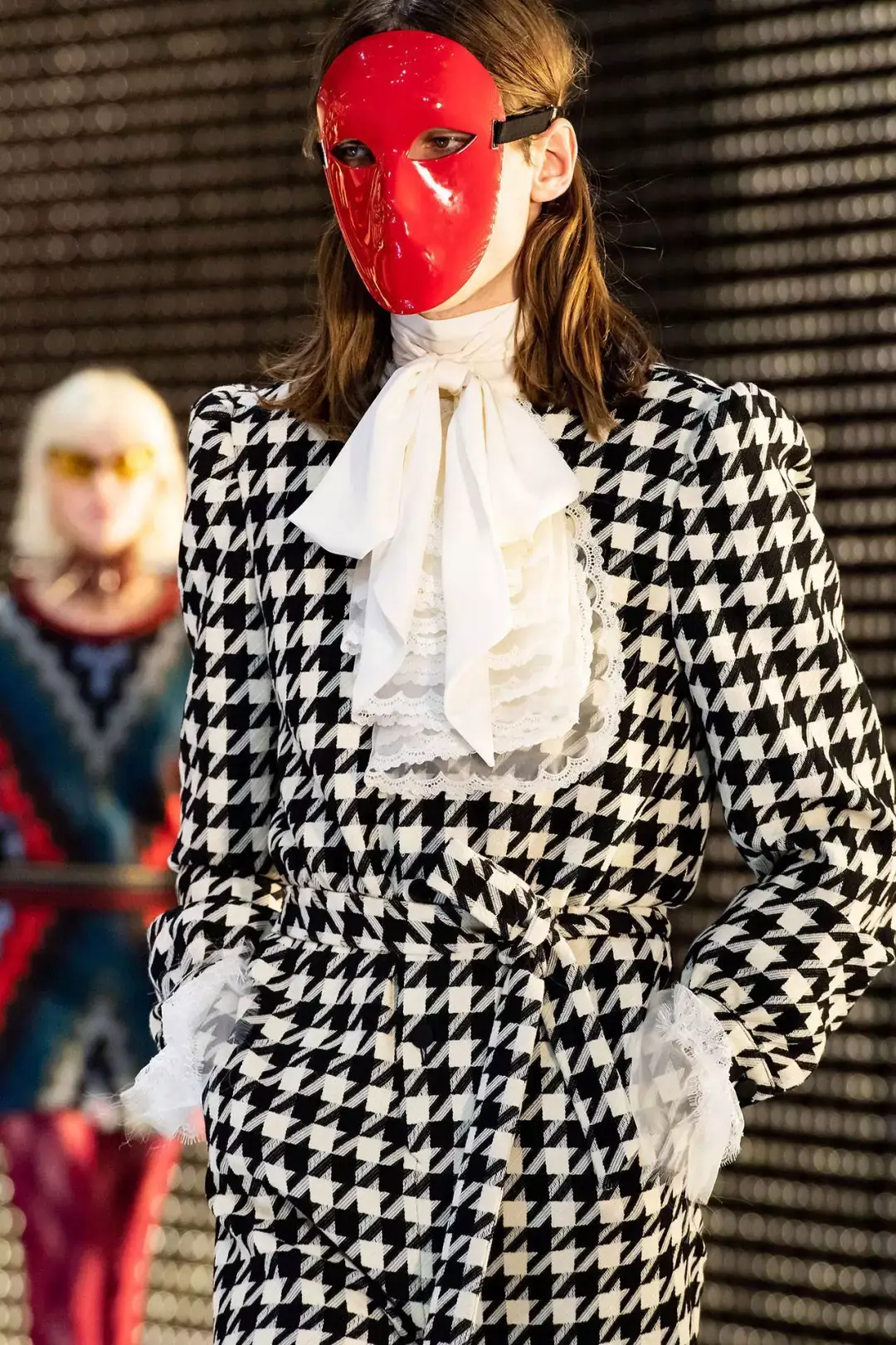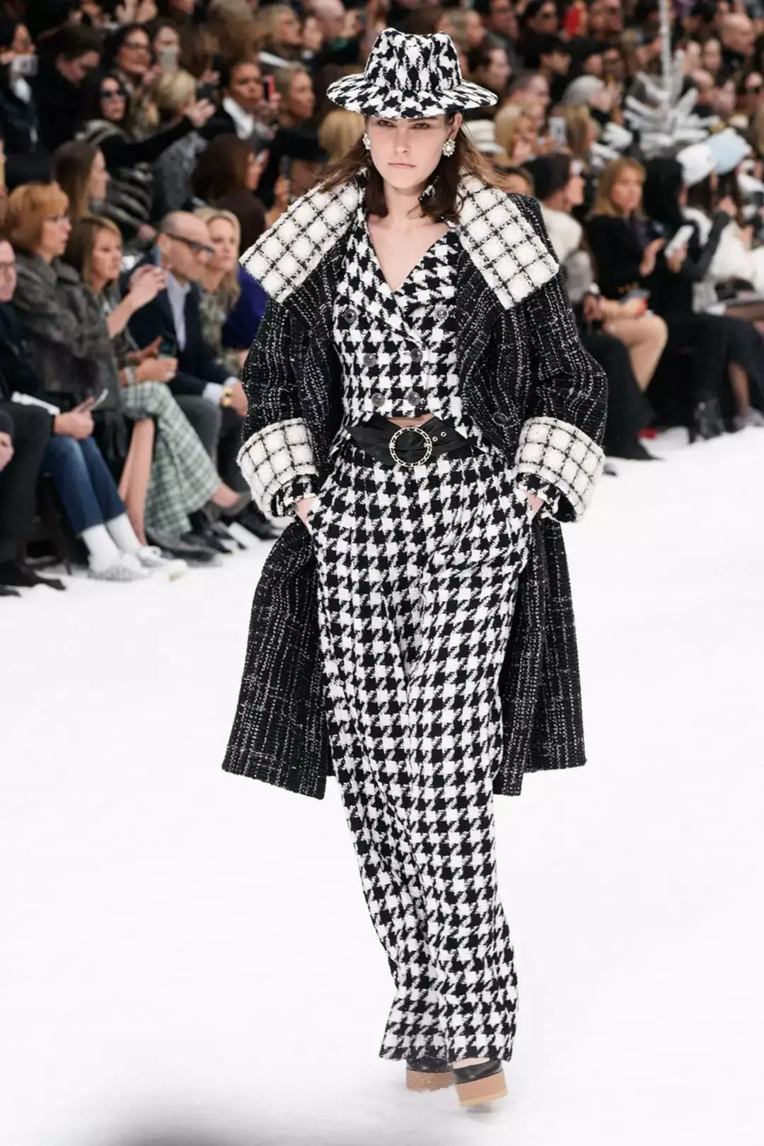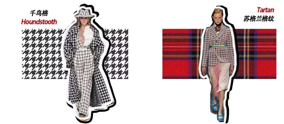 ▼ 左:Chanel 。右:Gucci。犹记得老佛爷走的时候,巴黎大皇宫里的Chanel2019秋冬大秀成了他的绝唱。Gucci的千鸟格有带着如蝙蝠侠里的小丑般的绅士和戏剧化。