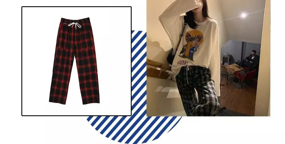 最近姨妈真的很迷格纹长裤,一条宽松剪裁的格纹长裤很容易搭配出复古的时髦感,而且可以包容绝大多数的身材,十分友好。