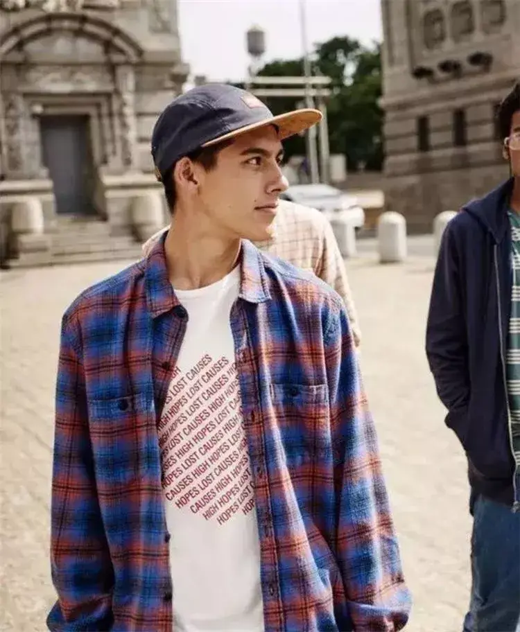 格纹衬衫在颜色的选择上稍微注意一下,亮色的衬衫更有青春洋溢的感觉。