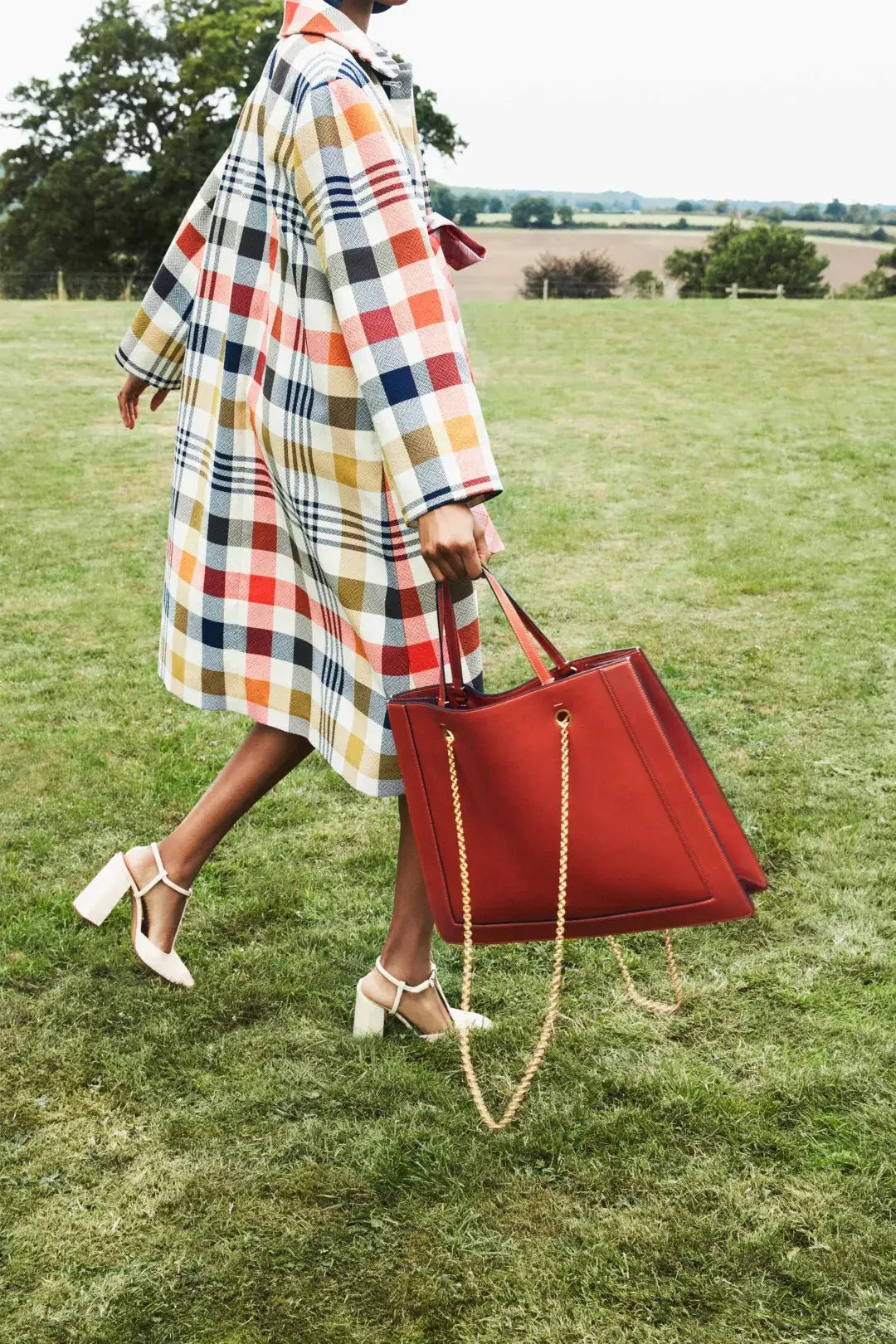 ▼ 阳光明媚的日子,穿上一条格纹连衣裙可以开心去路野。Mulberry 2019春夏系列将自然之色融入格纹之中,简单且宁静。