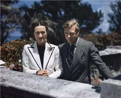 ▼穿着威尔士亲王格纹西装的温莎公爵和夫人。