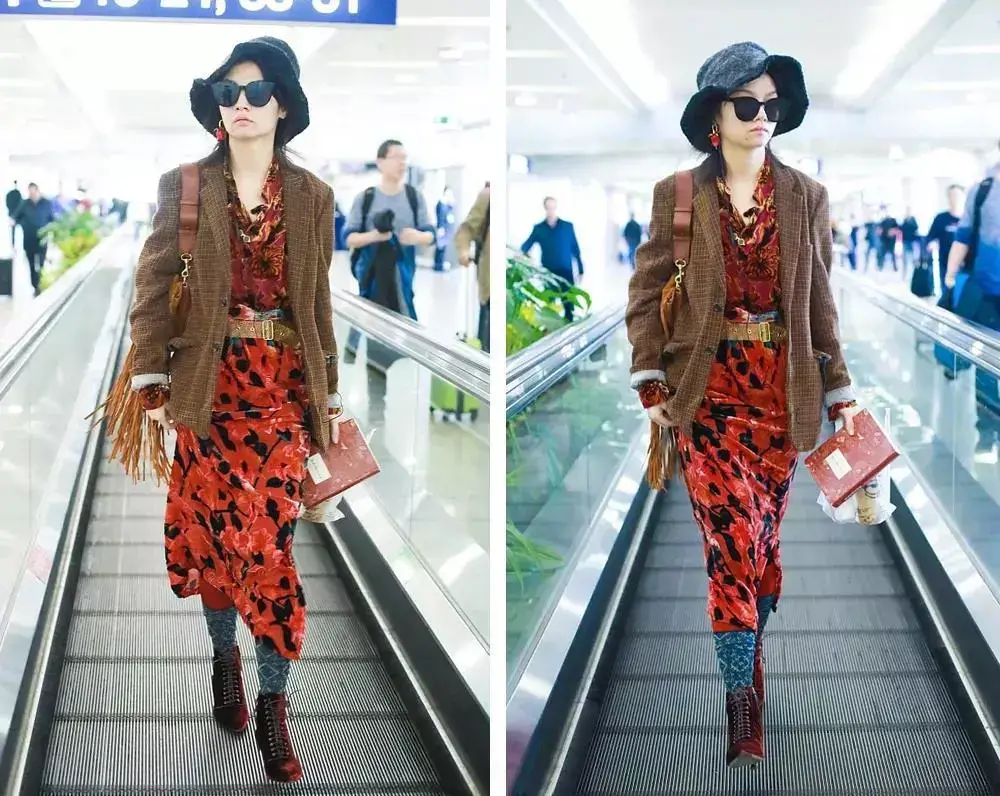 ▼ 春夏的这套机场look,跟刚刚结束的时装周上小马哥的设计不谋而合,用心又没有用力过猛的感觉。