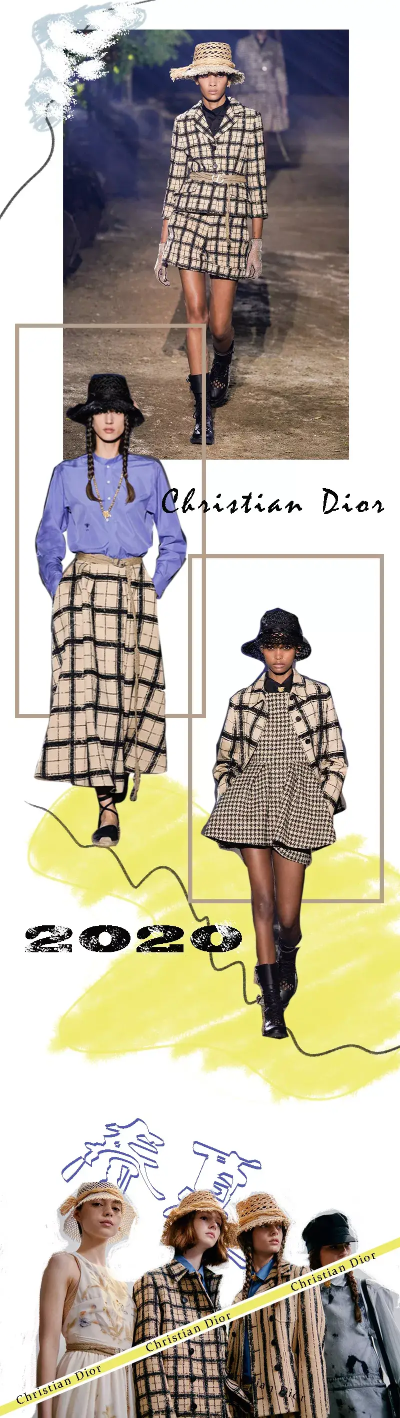 ▼ Dior 近两年的秀场上堪称格纹大起底。刚刚结束的巴黎时时装周,Dior2020年春夏高级成衣时装发布秀上,以Dior先生的妹妹作为灵感构建花园里,格纹轻轻登场。