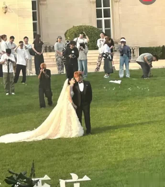 绿色草坪上,一头耀眼的黄发与洁白婚纱交相辉映,黄子韬与徐艺洋的婚纱照现场,仿佛上演了一出现实主义浪漫喜剧。