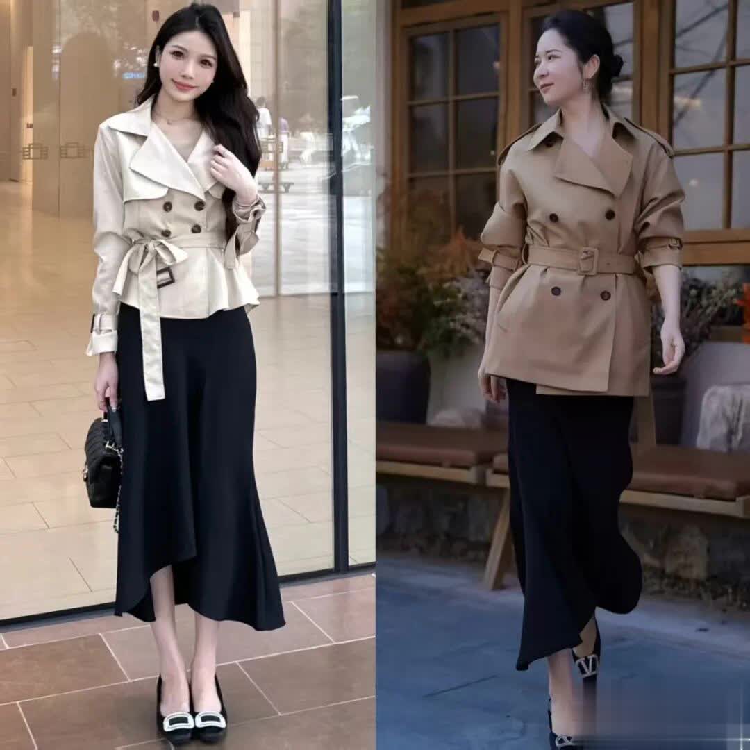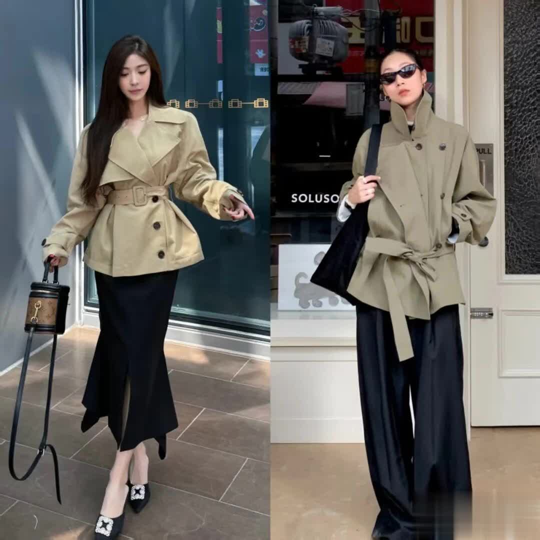 短风衣就刚好踩中了这些"痛点",长度卡在腰胯上面一点,不压个子,还能悄悄把腰腹的肉肉遮住了,比针织衫显瘦多了。