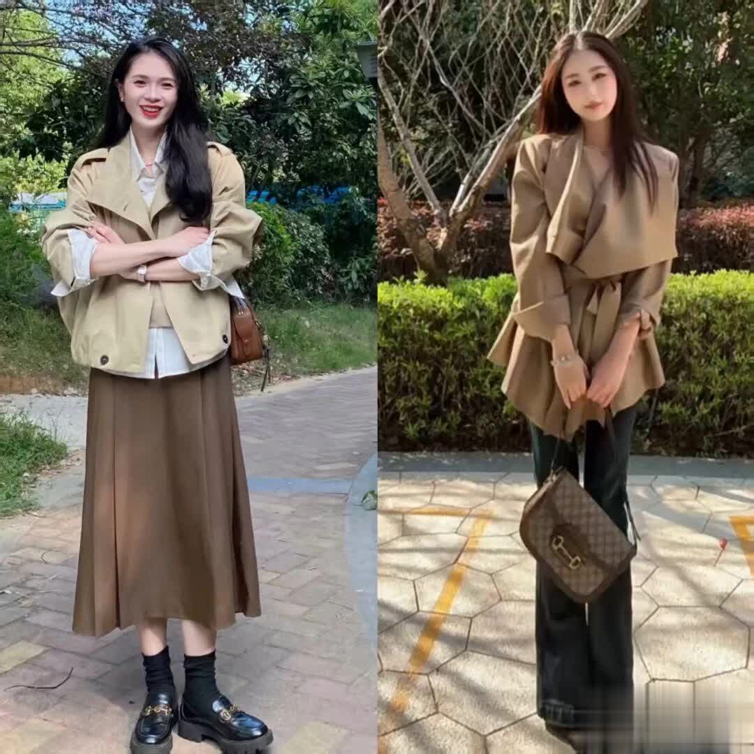 小编记得去年这个时候还流行针织衫、衬衫,今年发现穿短款风衣的人突然多了起来。