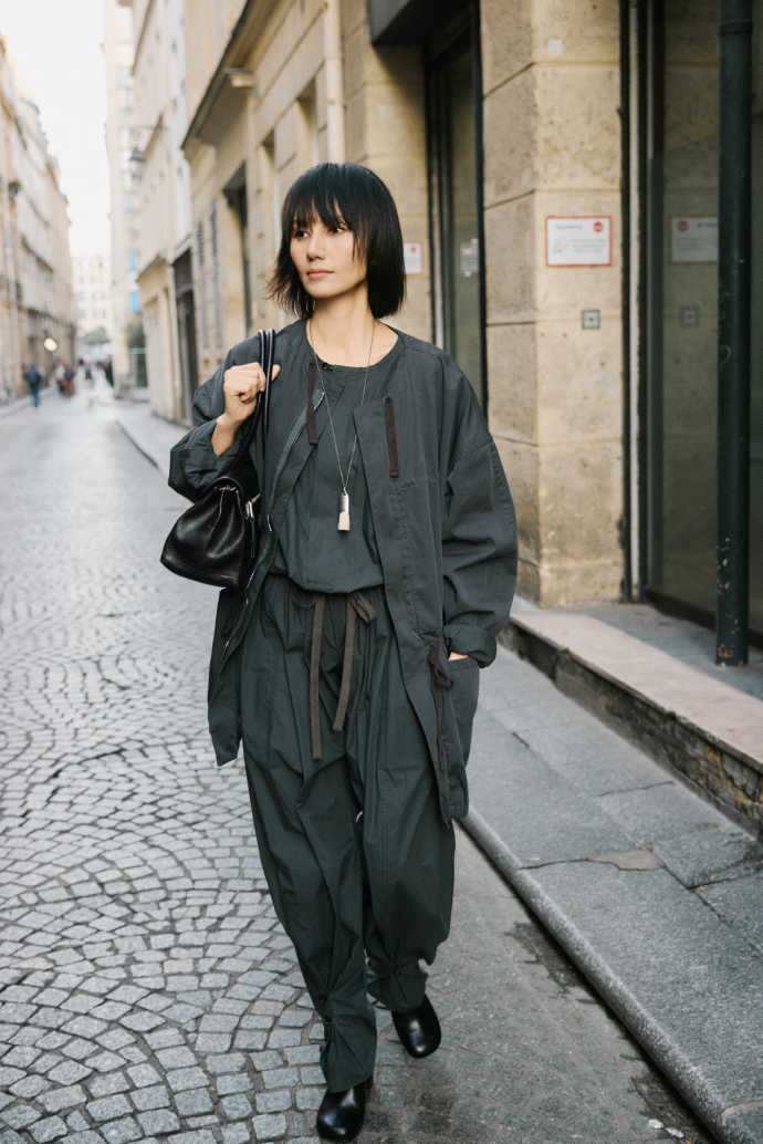 袁泉的休闲穿搭也很好看,例如下面用一件灰色的外套内搭同色系的打底衫和一条灰色的烟管裤,脚上穿了一双黑色的皮鞋,这样的穿衣打扮简约大方。