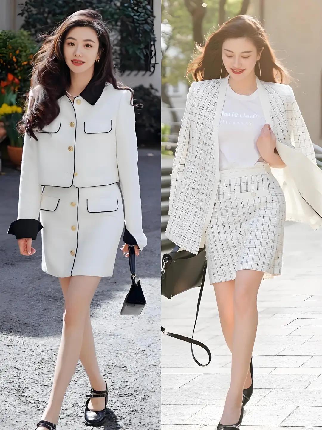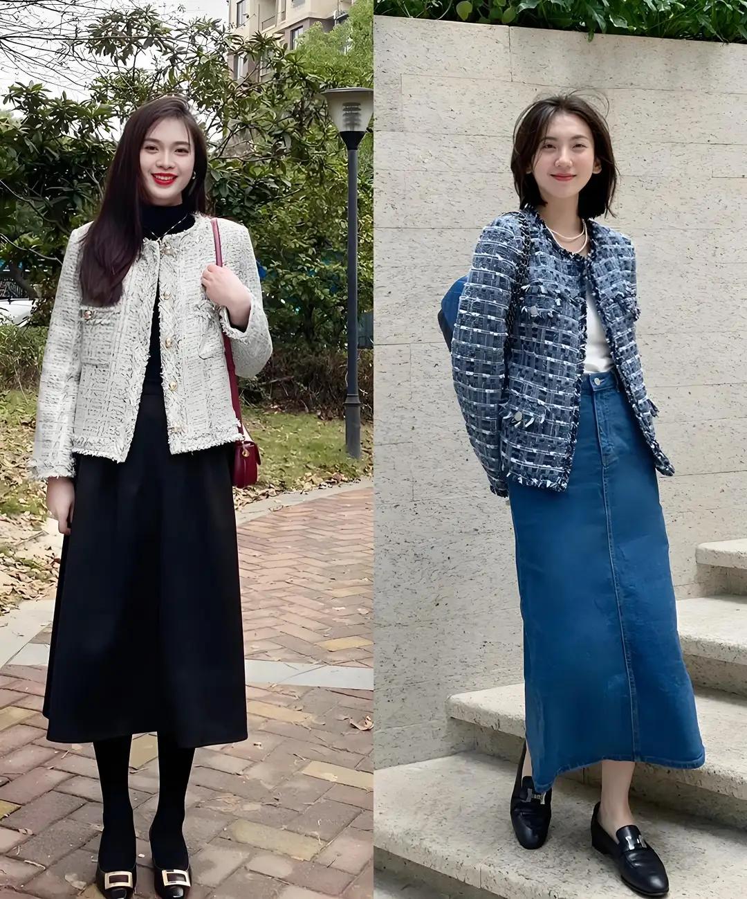 人的身材不同,选择的创意风格也有一定的区别,比如你是高挑纤瘦,身材凹凸有致的女性,这个时候你还可以选择下面这种小香风裙装,裙子长度在膝盖以上三到五厘米,这样形成一个下半身失踪的穿搭技巧,能更好的展现大长腿的优势,同时,选择裙子的时候多选高腰收腰款,能更好的展现出你的小蛮腰。