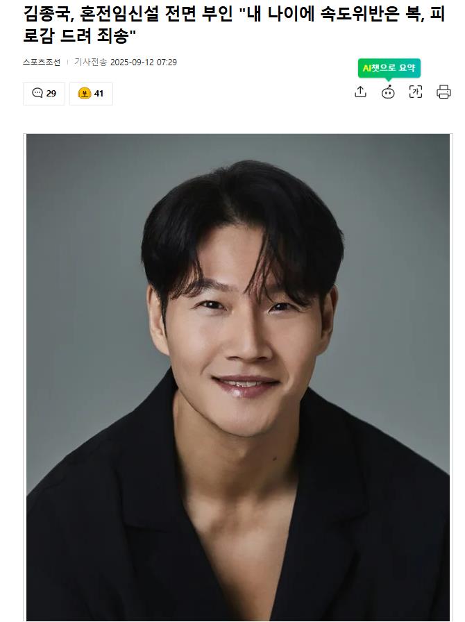 面对这种猜测,金钟国直接划清界限:“以我这个年纪,要是真的婚前怀孕那是福气好不好!”但他紧接着斩钉截铁地否认:“但真的不是婚前怀孕。”他还留了个钩子,引发众人好奇:“我们是因为相爱才结婚的。她是一个全是优点的人。”并透露妻子是“比我年纪小、和LA无关的韩国人”,甚至幽默地吐槽了一句:“因为信封(疑似指礼金安排)还出现过一次危机。”