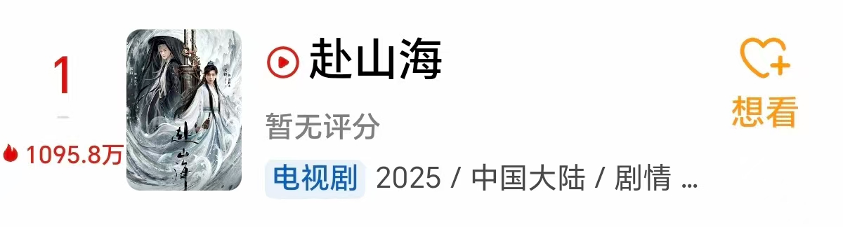 更让人值得一提的是《赴山海》还没开播前就双平台预约量超过1100万,