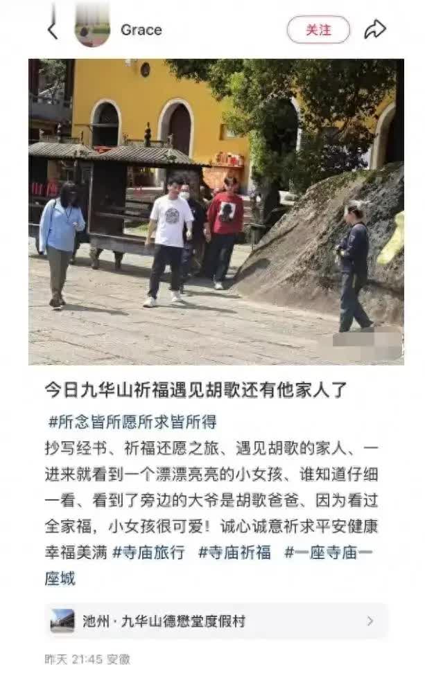 胡歌的参与感:从为女儿购置万元婴儿车,到被偶遇带家人游日本(2024年)、九华山祈福(2025年),其行程虽满,仍通过物质支持与碎片化陪伴传递父爱。