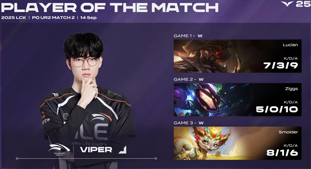后续的中路团战T1先手开团牛头,Faker的R闪效果并不好,被HLE一波反打轻松打赢团战,这个时候天平已经失衡,小火龙直接发育成型,HLE拿下大龙后轻松拿下比赛的胜利,带走了T1,赛后Viper也是当选MVP,三局比赛的表现都堪称完美。