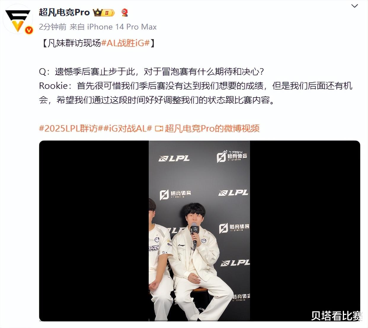 IG告别季后赛,解说评Rookie状态差,wei承认打野差距大!