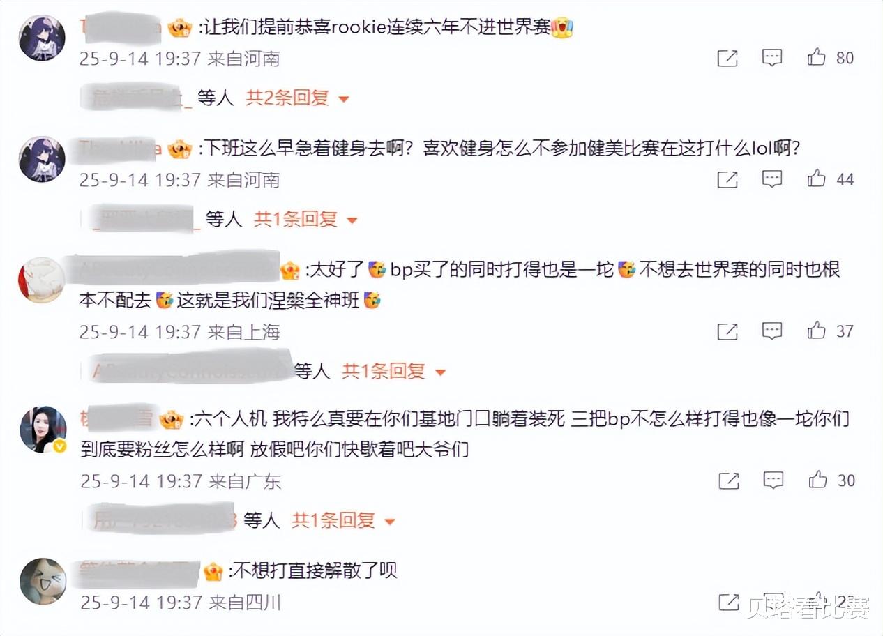 首先是赛后IG官博炸了,被骂得最惨的是中单Rookie,不少粉丝怒斥:Rookie连续5年进不去世界赛是有原因的,现在沉迷健身,这么喜欢健身就不要来打比赛了!也有粉丝直言:BP很差,选手打得也很差,不想打直接解散算了。