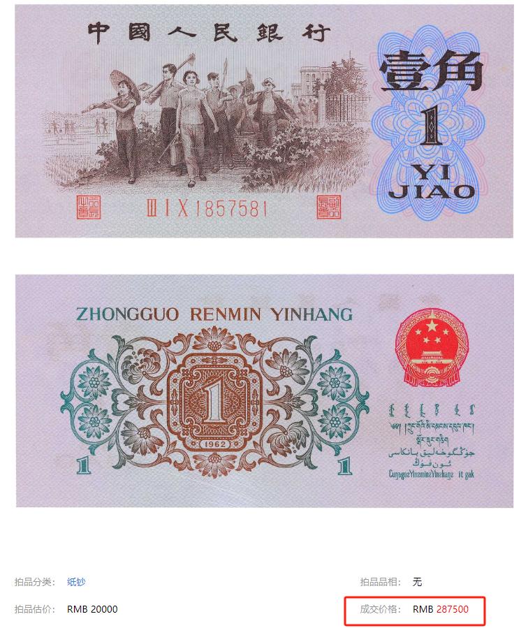早期1角纸币卖了287500元,你家有吗?
