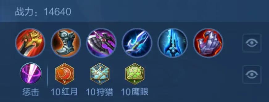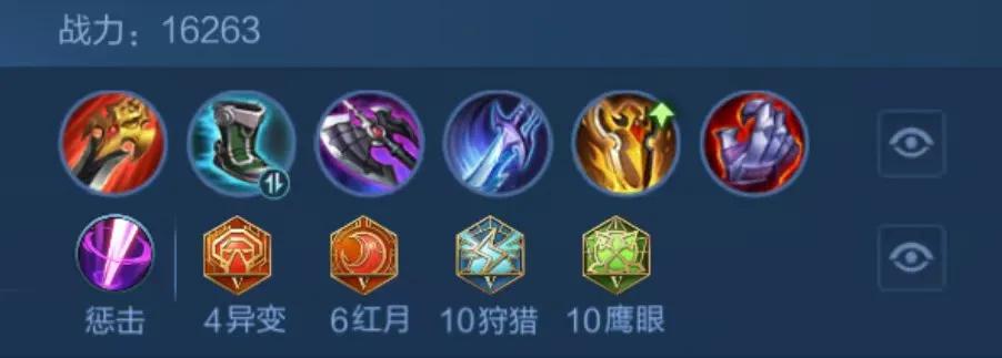 出装铭文:8x异变,2x红月,10x鹰眼,10x狩猎