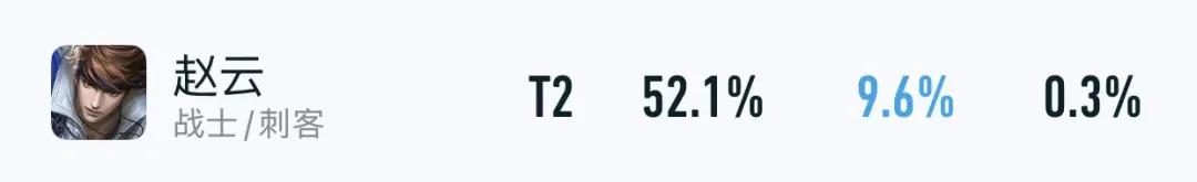 而在排位赛里,赵云更是有着52.1%胜率+9.6%出场率的数据,说明用他冲王者或者荣耀是可行的,并没有大家想象中那么“下水道”。