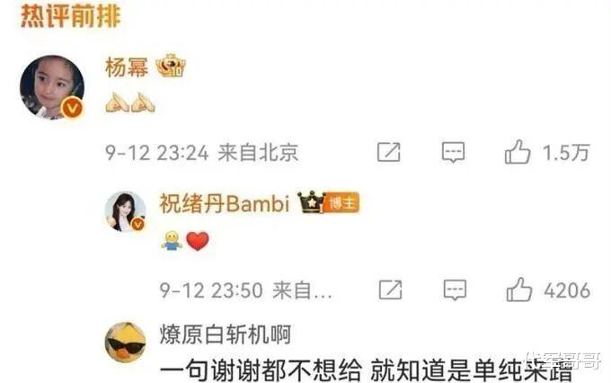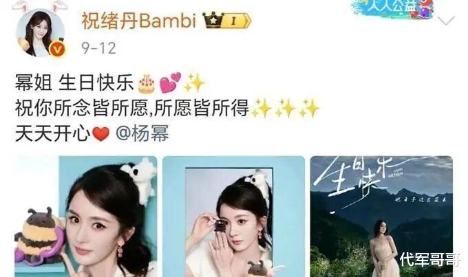 在杨幂还在嘉行时,祝绪丹年年准时为杨幂送上生日祝福,杨幂回复也满是亲昵,“宝贝祝祝”“么么哒” 的互动,让人感觉两人关系十分要好。可 2023 年杨幂官宣离开嘉行,紧接着作品口碑遇冷、事业陷入低谷,祝绪丹的态度瞬间转冷。在 2023、2024 两年杨幂生日时,她全程隐身,之前《狐妖小红娘》杀青,晒合照时更是故意漏掉女主杨幂。然而,2025 年杨幂凭新剧《生万物》翻红,祝绪丹又立马贴上去送祝福,文案写得热情洋溢。但这次杨幂只回了两个抱拳表情,体面中透着疏离,个中意味,不言而喻。