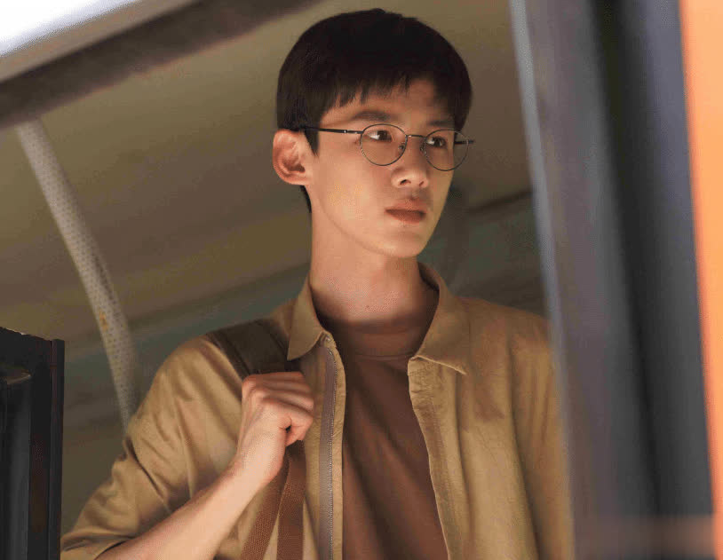 同样是悬疑题材,《开端》中白敬亭饰演的肖鹤云还是穿着衬衫背着书包,有些“中二”气息的男青年。